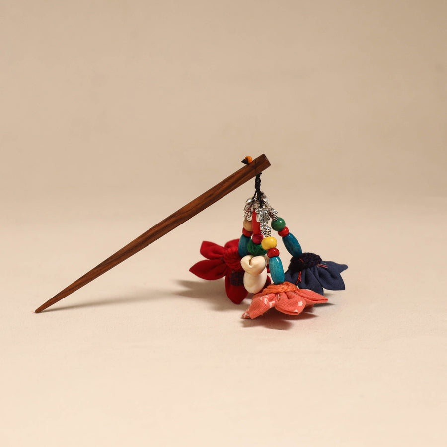 Handmade juda stick adds a graceful touch to your hairstyle. Made with a wooden base, it features intricate artistic details that may include beads, threadwork, german silver, fabric phool kali, shells or other decorative elements, reflecting the unique creativity of the maker.