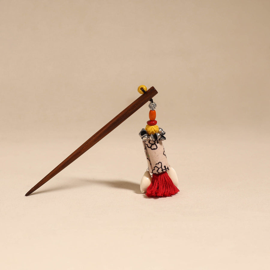 Handmade juda stick adds a graceful touch to your hairstyle. Made with a wooden base, it features intricate artistic details that may include threadwork, german silver, fabart or other decorative elements, reflecting the unique creativity of the maker.