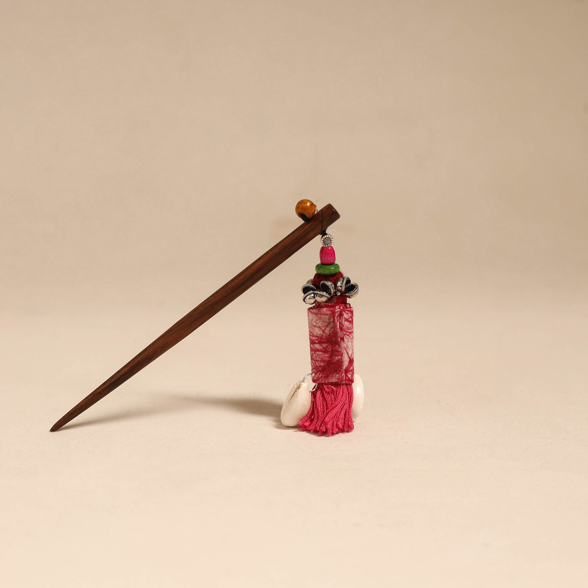 Handmade juda stick adds a graceful touch to your hairstyle. Made with a wooden base, it features intricate artistic details that may include threadwork, german silver, fabart or other decorative elements, reflecting the unique creativity of the maker.