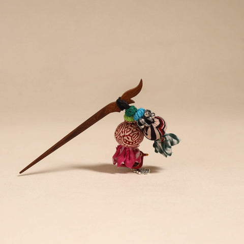 Handmade juda stick adds a graceful touch to your hairstyle. Made with a wooden base, it features intricate artistic details that may include threadwork, german silver, fabart or other decorative elements, reflecting the unique creativity of the maker.