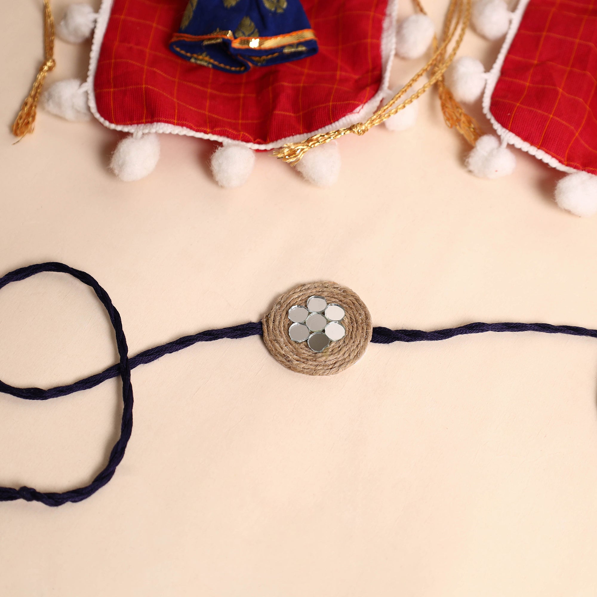 Celebrate the joyous festival of raksha bandhan with our exquisite handmade jute rakhi. Carefully handcrafted with intricate bead and mirror work, this rakhi is a true symbol of love and affection shared between a brother and sister. It comes beautifully packed in a charming potli, adding an extra touch of elegance.