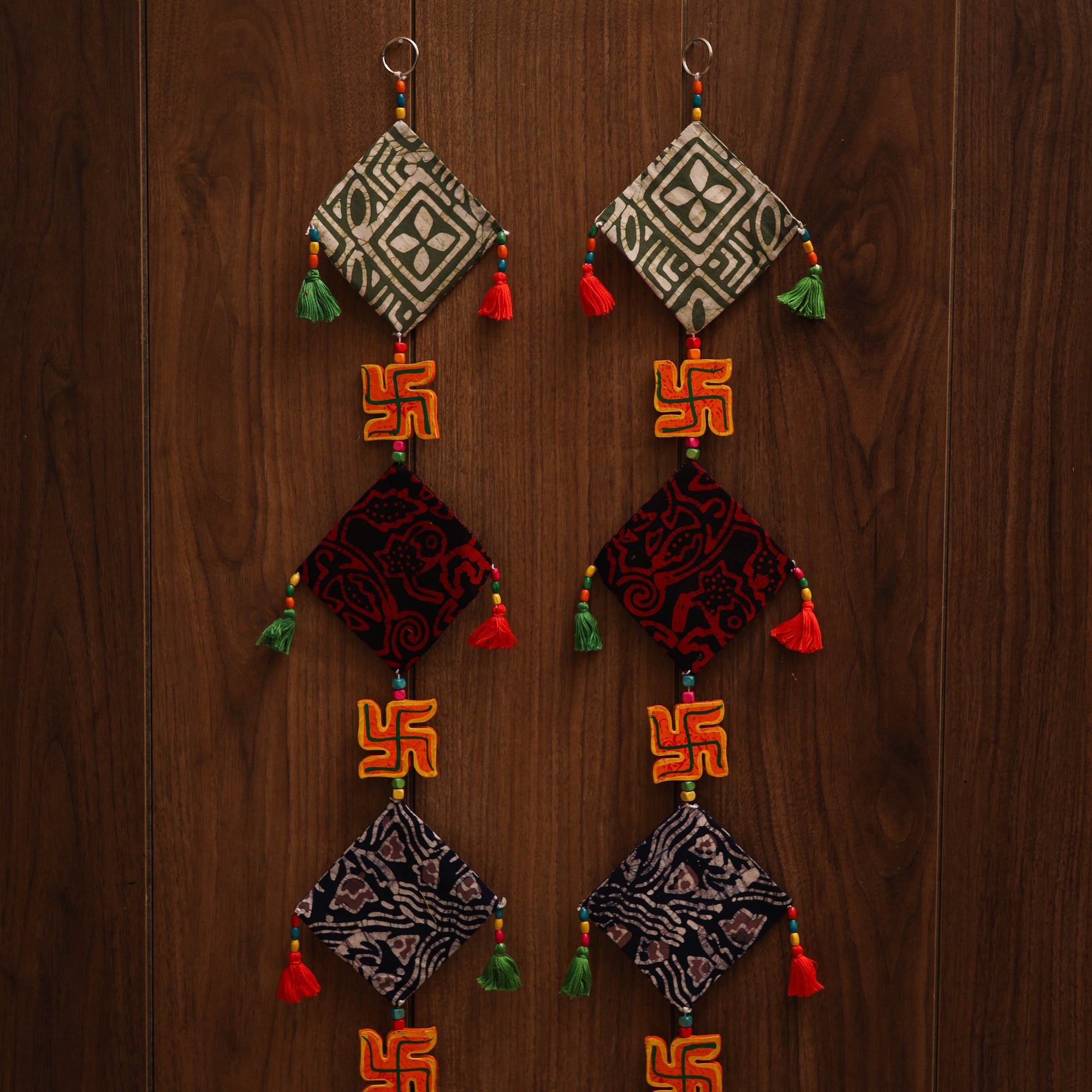| Material | This multicolor bead work fabric hanging blends traditional detailing with vibrant charm. Designed with layered decorative elements, it brightens up doorways for Diwali, weddings, or housewarmings. Perfect for everyday positivity as well as special celebrations. |