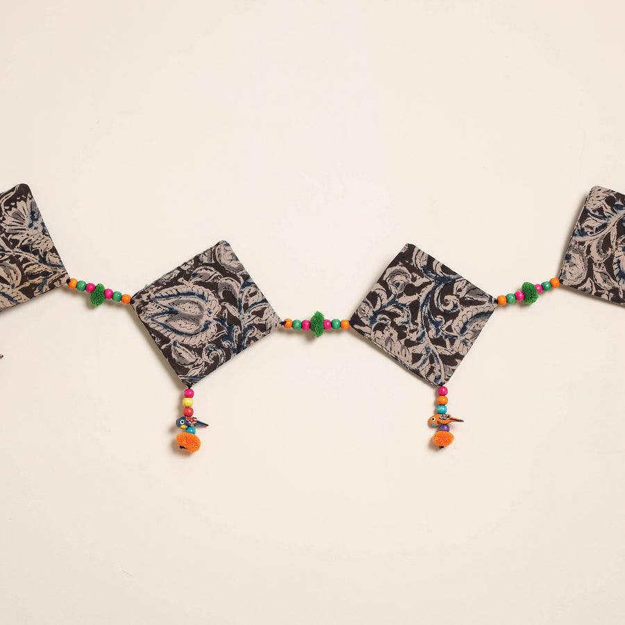 This handmade toran for home decor is crafted from fabric and adorned with intricate wooden beadwork and pompoms. Designed by skilled artisans, it brings festive and cultural charm to your doorways a perfect piece to celebrate traditional Indian aesthetics in everyday spaces.