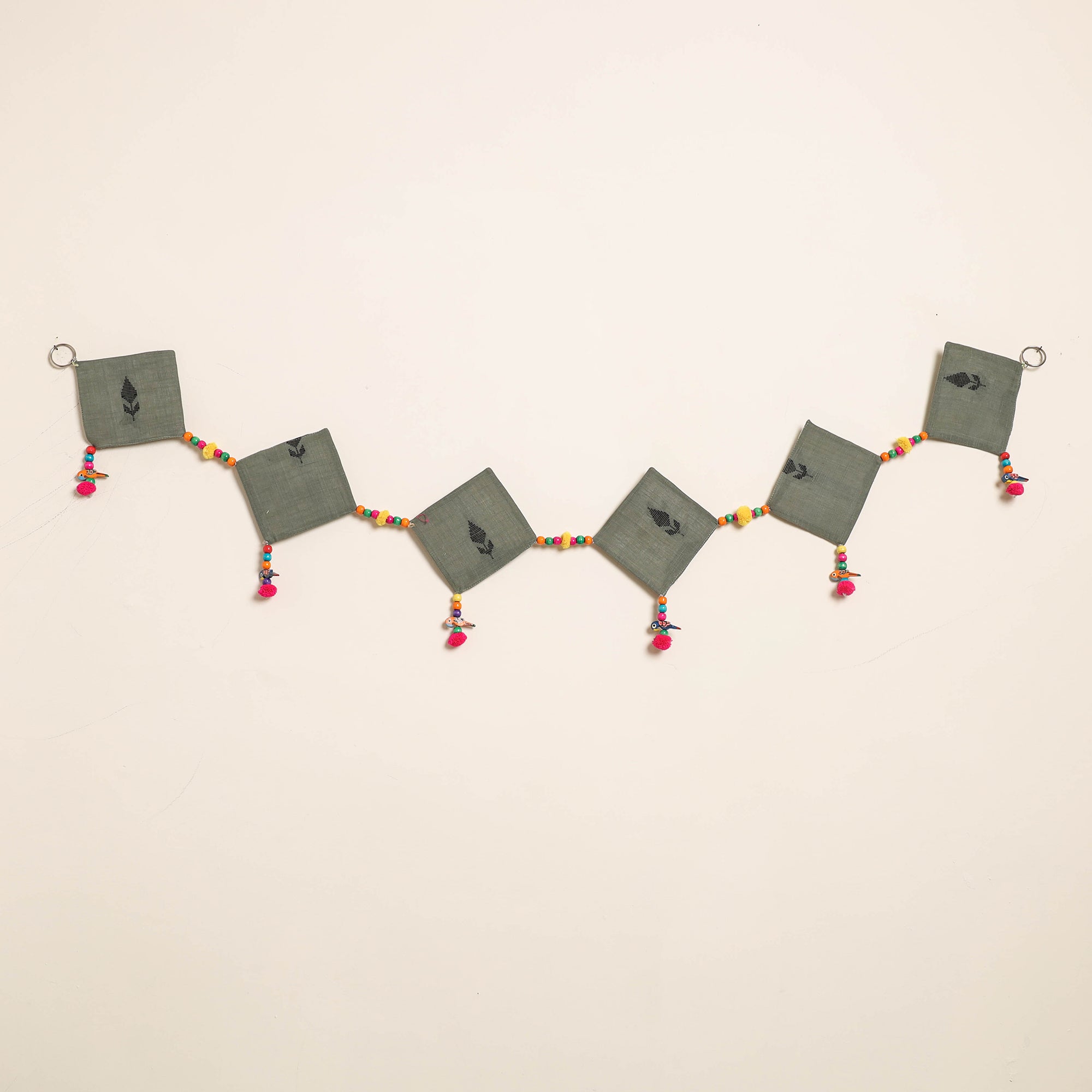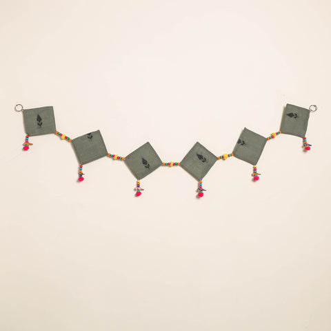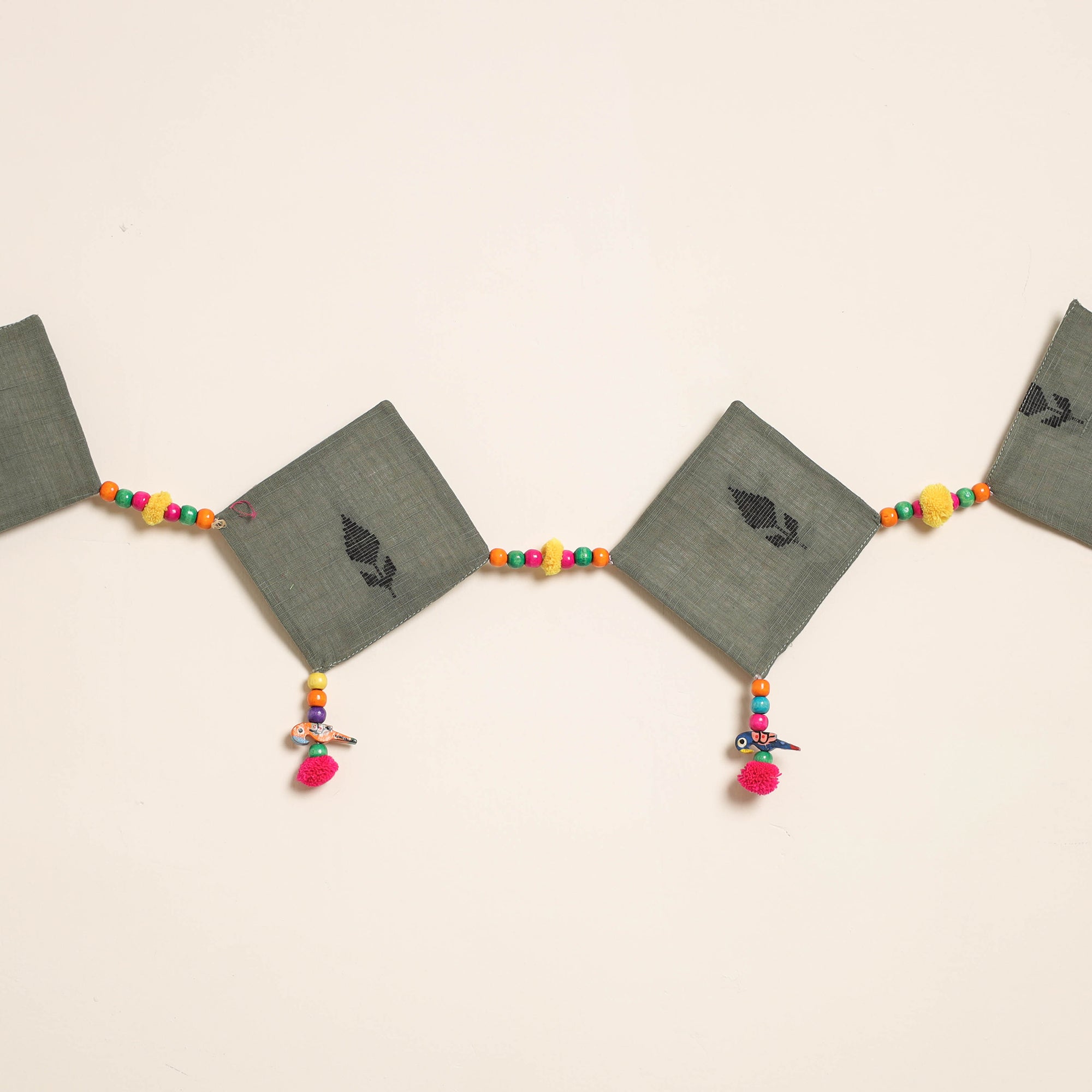 This handmade toran for home decor is crafted from fabric and adorned with intricate wooden beadwork and pompoms. Designed by skilled artisans, it brings festive and cultural charm to your doorways a perfect piece to celebrate traditional Indian aesthetics in everyday spaces.