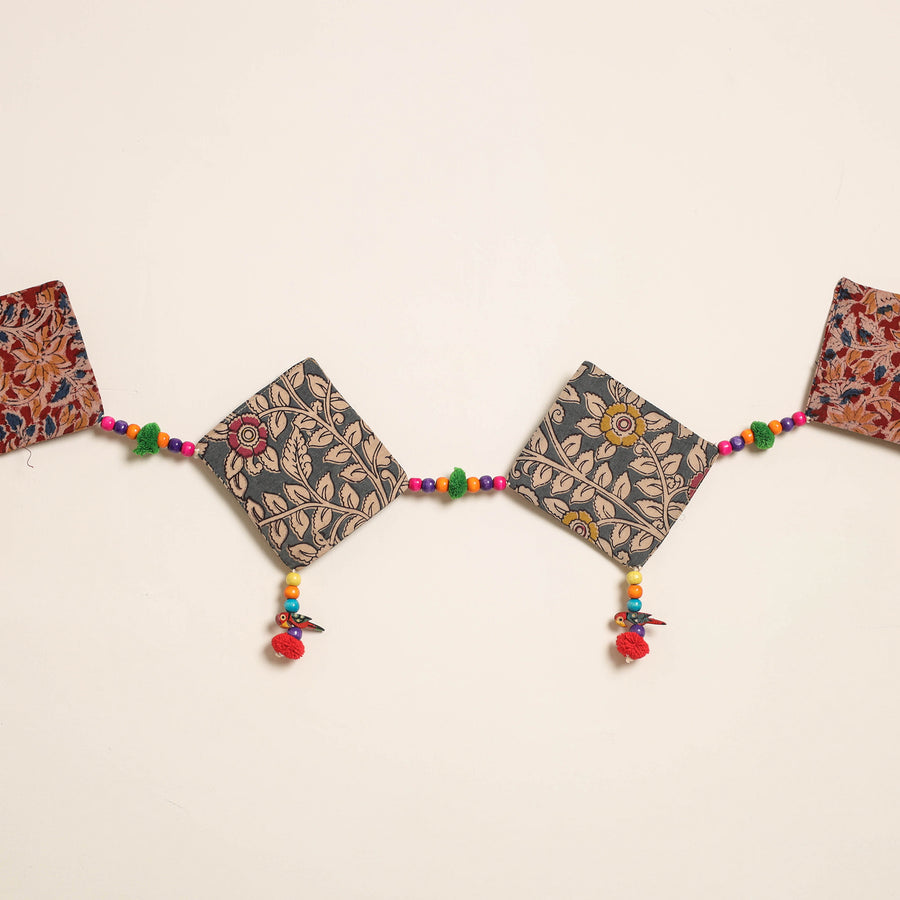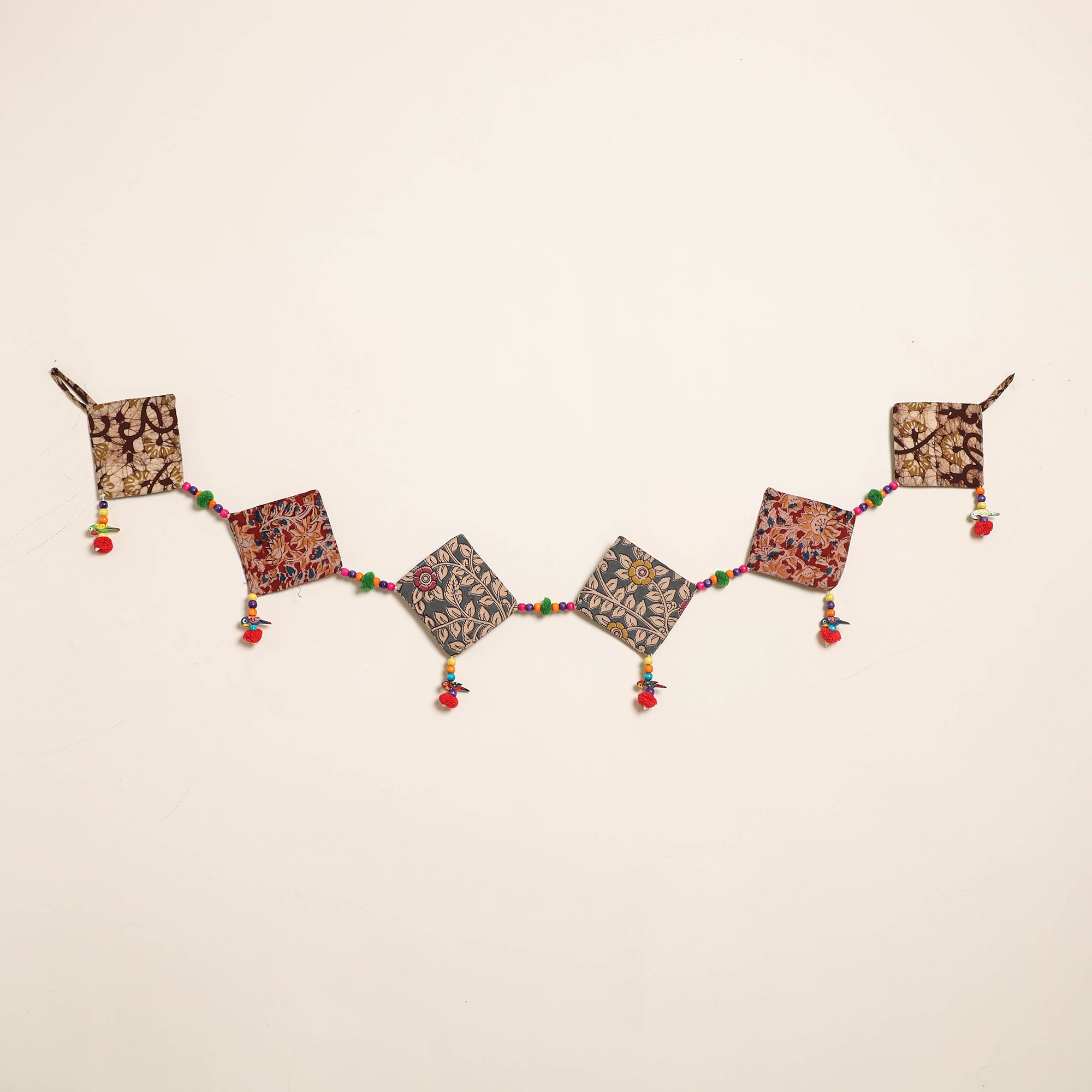 This handmade toran for home decor is crafted from fabric and adorned with intricate wooden beadwork and pompoms. Designed by skilled artisans, it brings festive and cultural charm to your doorways a perfect piece to celebrate traditional Indian aesthetics in everyday spaces.