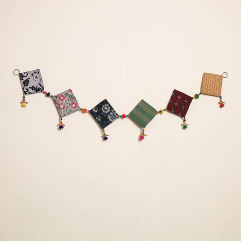This handmade toran for home decor is crafted from fabric and adorned with intricate wooden beadwork and pompoms. Designed by skilled artisans, it brings festive and cultural charm to your doorways a perfect piece to celebrate traditional Indian aesthetics in everyday spaces.