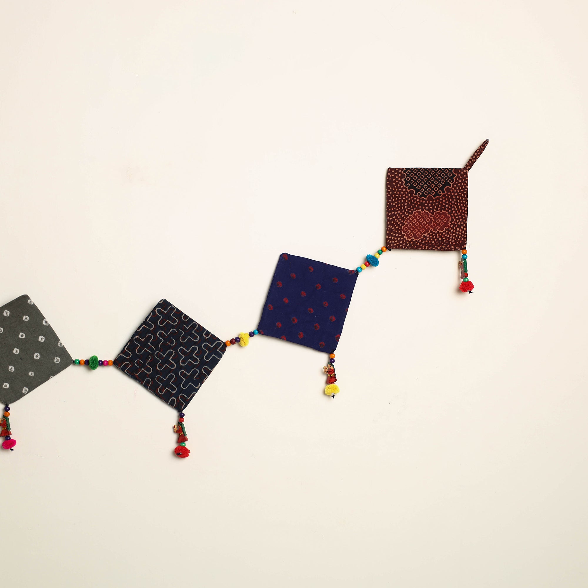 Celebrate tradition with this handmade fabric toran, intricately crafted by skilled artisans with delicate beadwork and vibrant pompoms. Designed to bring festive cheer and classic charm, this toran graces your gateways and walls with a lively traditional spirit. Perfect for special occasions or daily décor, blending heritage and craftsmanship beautifully