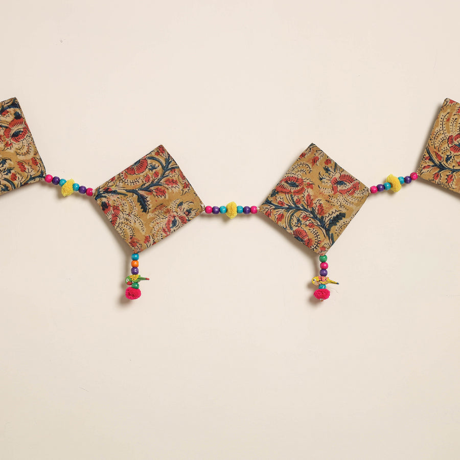 This handmade toran for home decor is crafted from fabric and adorned with intricate wooden beadwork and pompoms. Designed by skilled artisans, it brings festive and cultural charm to your doorways a perfect piece to celebrate traditional Indian aesthetics in everyday spaces.
