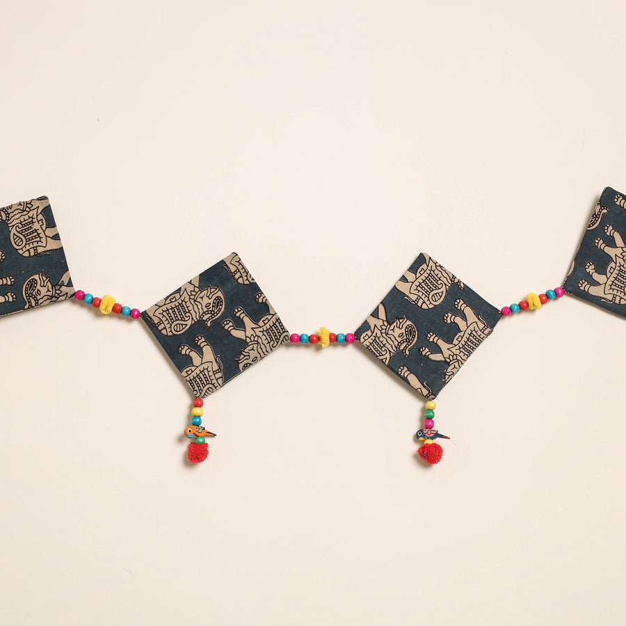This handmade toran for home decor is crafted from fabric and adorned with intricate wooden beadwork and pompoms. Designed by skilled artisans, it brings festive and cultural charm to your doorways a perfect piece to celebrate traditional Indian aesthetics in everyday spaces.
