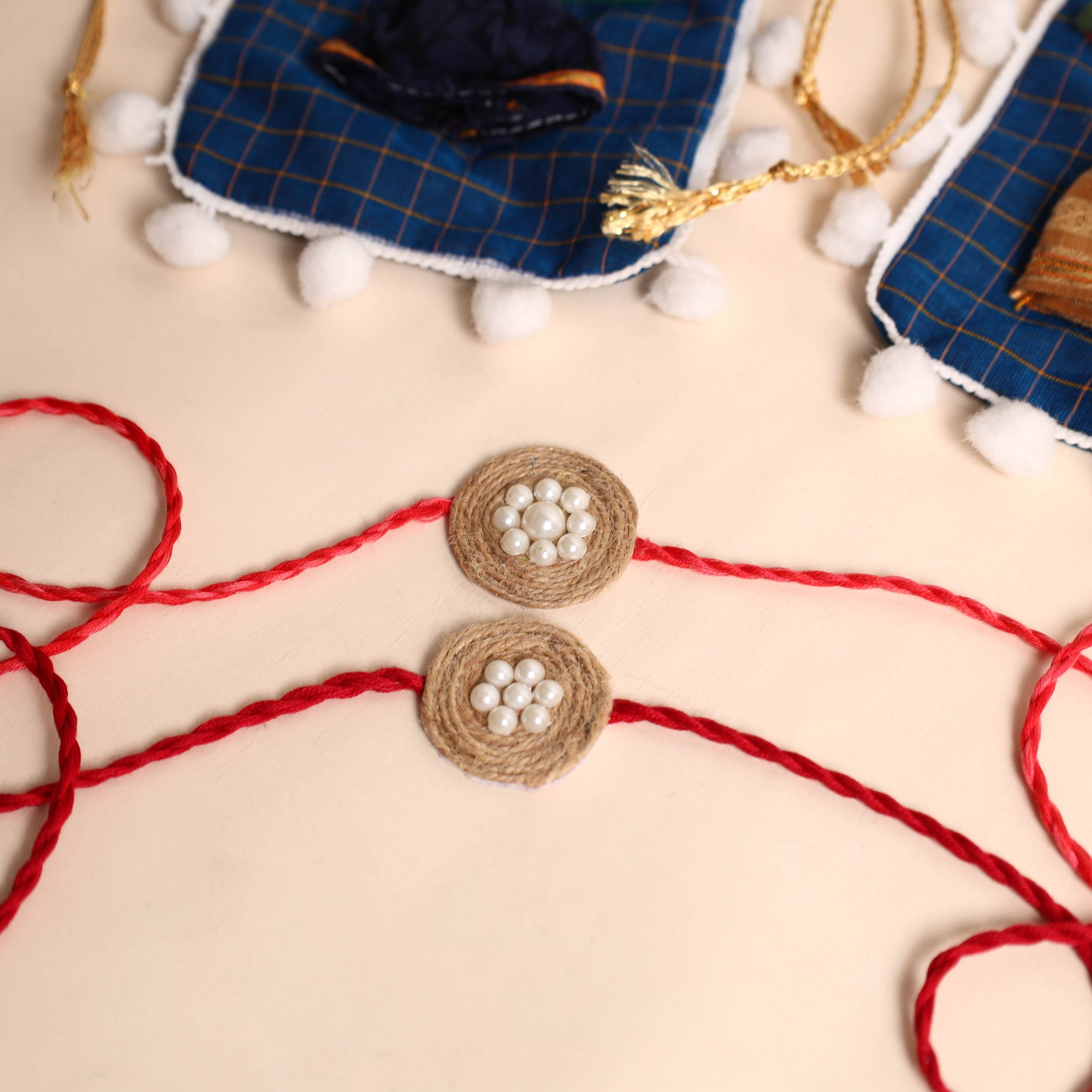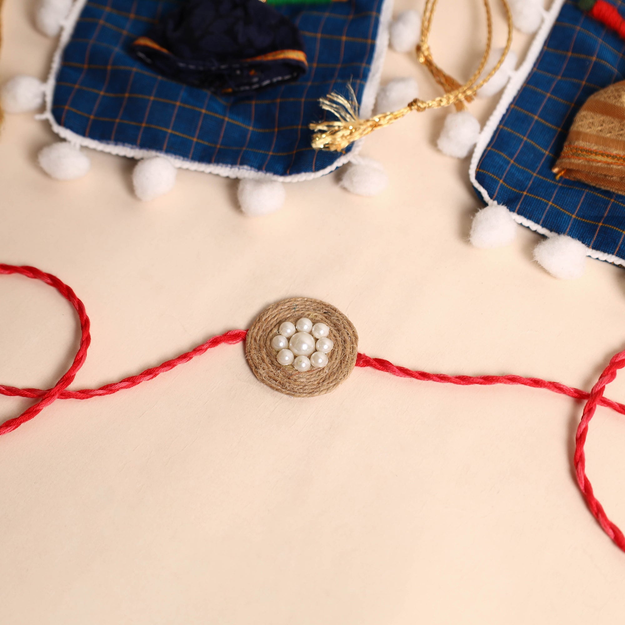 Celebrate the joyous festival of raksha bandhan with our exquisite handmade jute rakhi. Skillfully handcrafted with intricate bead work, this rakhi is a true symbol of love and affection between brother and sister. This rakhi will come with a potli for added charm.