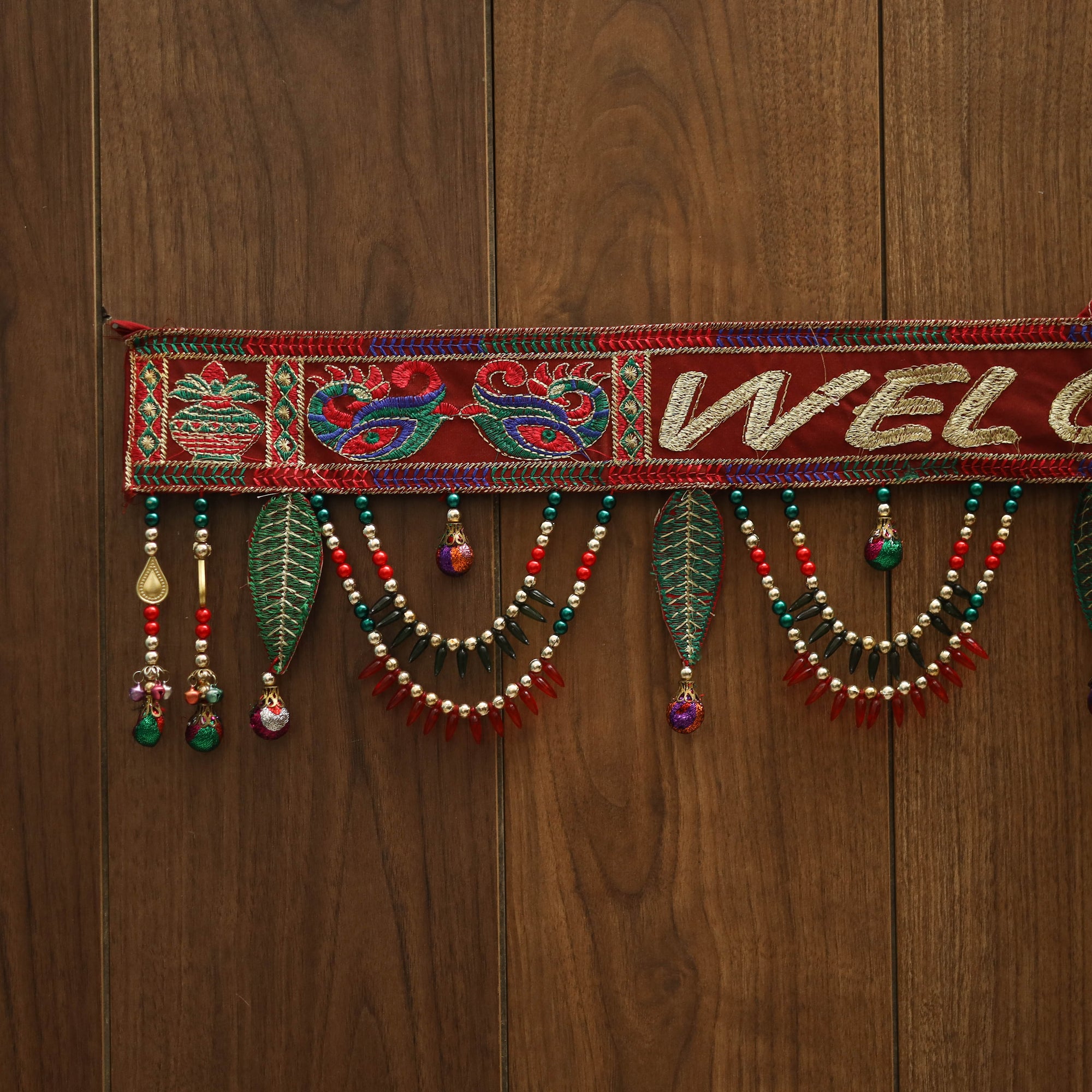 This handmade bead work kutch embroidery toran is crafted with traditional detailing, making it a beautiful decor piece for your home entrance. Designed to bring positivity, it enhances doorways during special occasions and everyday use. Ideal for festivals like Diwali, weddings, or housewarmings, this toran instantly brightens up spaces. A perfect blend of cultural charm and decorative elegance, it adds a welcoming touch to your home.