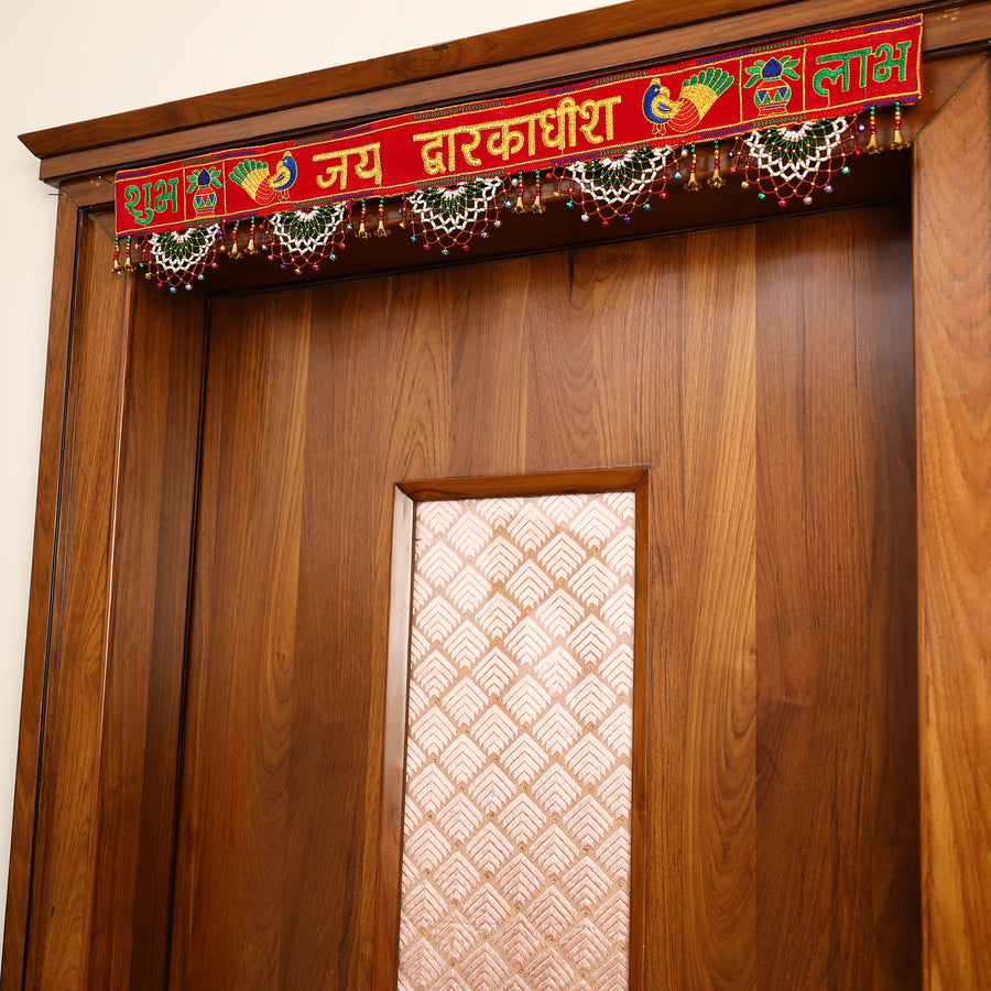 The origins of toran can be traced back to Purana (a work of Hindu mythology). Torans are used to decorate the main entrance to a dwelling. The main idea behind decorating the house is to please and attract the goddess of wealth Lakshmi. This toran is the first to greet guests.