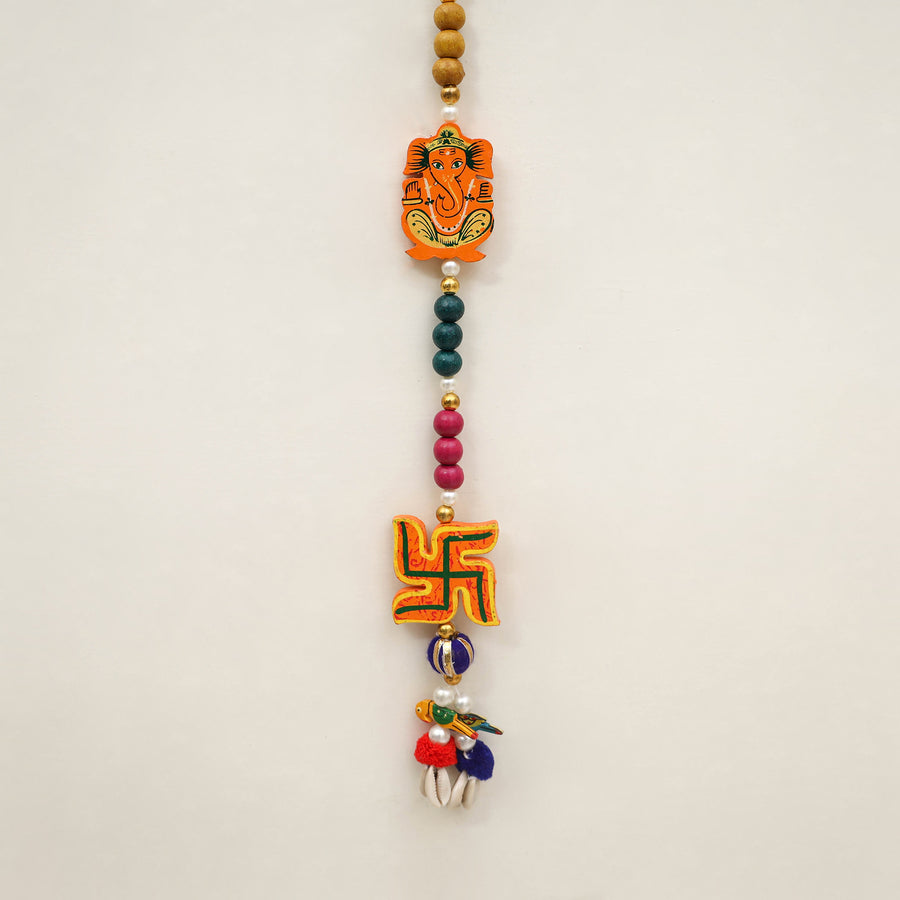 | Material | This handmade bead work wall hanging is the perfect addition to your diwali or festive decor. Crafted by skilled artisans, the design features traditional threadwork, beads, pompom and handpainted wooden, making it a charming addition to diwali or any festive occasion. Its elegant, handmade design brings cultural richness and blessings to your space. |