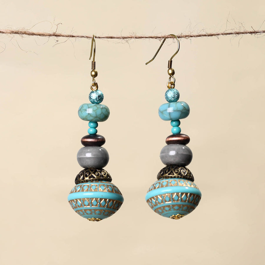 Add a touch of elegance to your wardrobe with these blue handmade beaded earrings by Sujata Gokhale. Each piece is a unique blend of intricate beadwork and carefully selected gemstones, creating a stunning accessory for any occasion.
