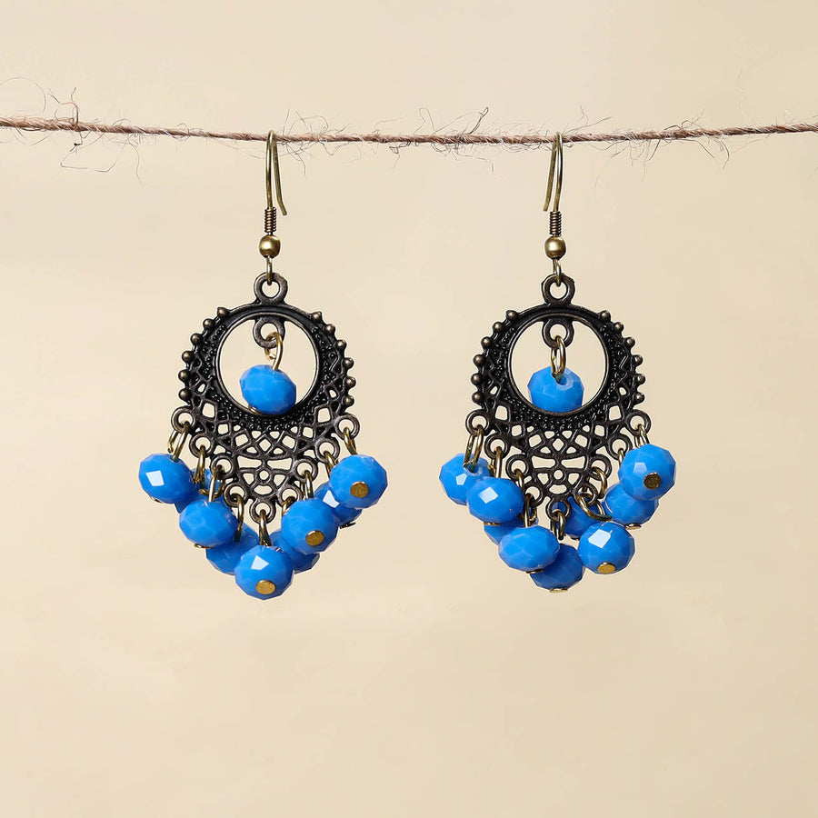 Add a touch of elegance to your wardrobe with these blue handmade beaded earrings by Sujata Gokhale. Each piece is a unique blend of intricate beadwork and carefully selected gemstones, creating a stunning accessory for any occasion.