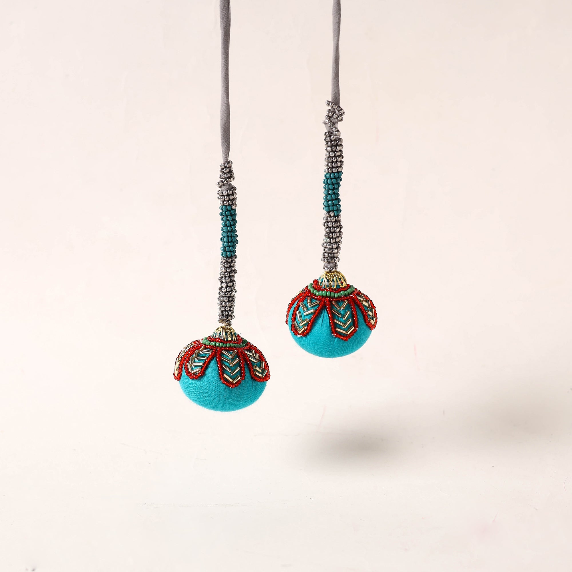 Add a touch of elegance to your outfit with this handmade beadwork latkan /tassels for clothing. Perfect for lehengas, blouses, or dupattas, they bring traditional charm to modern attire. Pair them with your favorite ensemble for a unique standout look