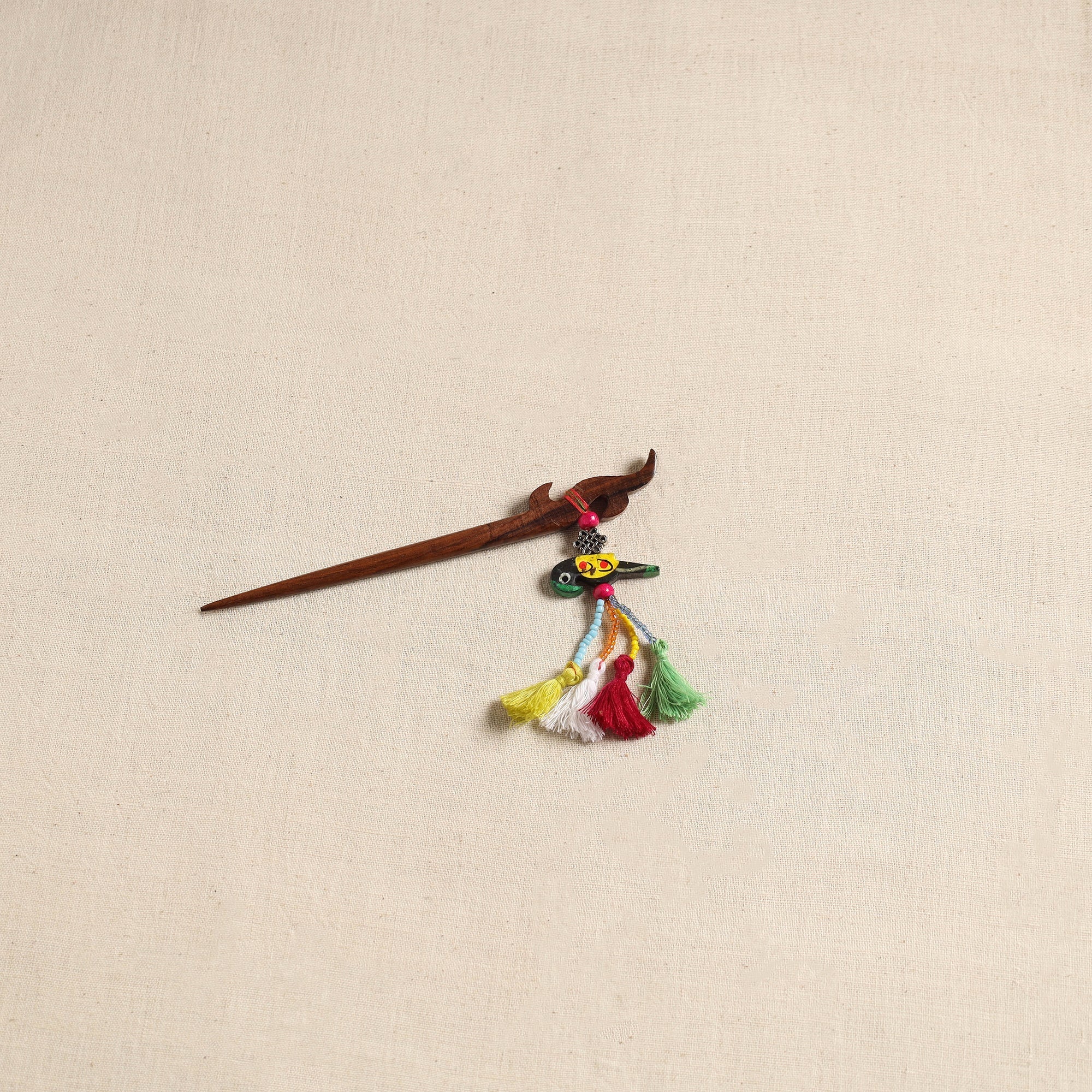 This bird tassel brown juda stick adds a graceful, eye-catching touch to your hairstyle. Made using a wooden base, it features intricate artisan-made details that may include beads, thread work, a hand-painted bird or other decorative elements, reflecting the unique creativity of the maker. Perfect for festive looks, wedding hairstyles or even everyday styling.