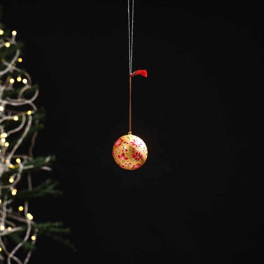 | Material | Give your christmas decor an artistic twist with this yellow handcrafted ornament. Hand-painted with bright acrylic colours and shaped for a clean, refined look, it instantly elevates any festive corner. Made from recycled paper pulp blended with adhesive and strengthened with multani mitti, it offers durability, smoothness and an eco-friendly charm your celebrations will truly enjoy. |