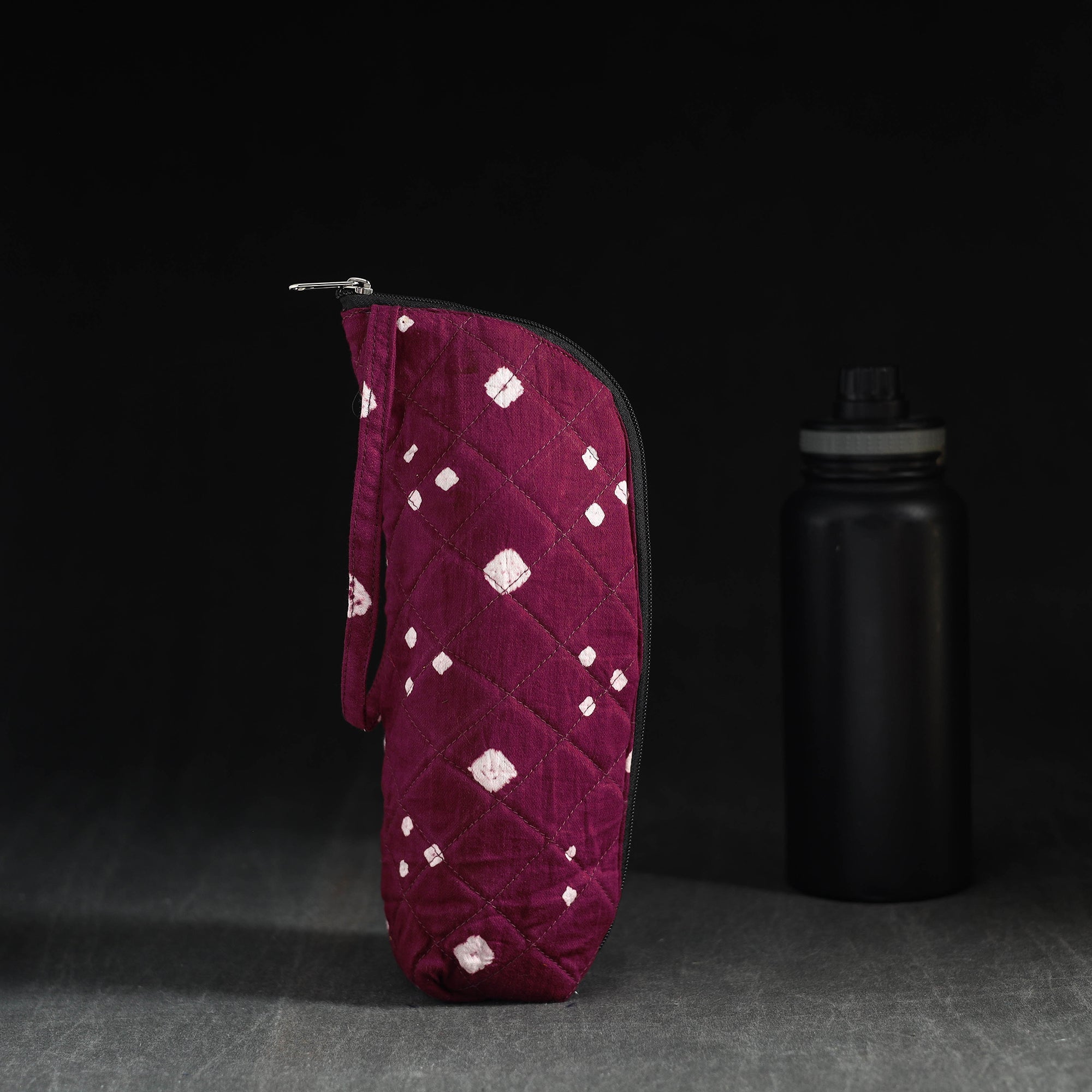 Add a touch of elegance to your hydration routine with this handmade purple cotton 1L water bottle cover. Designed with a foam layer lining and a secure zipper closure, it keeps your bottle protected while staying stylish. Crafted from soft, durable cotton, it’s perfect for daily use, travel, or eco-friendly gifting.