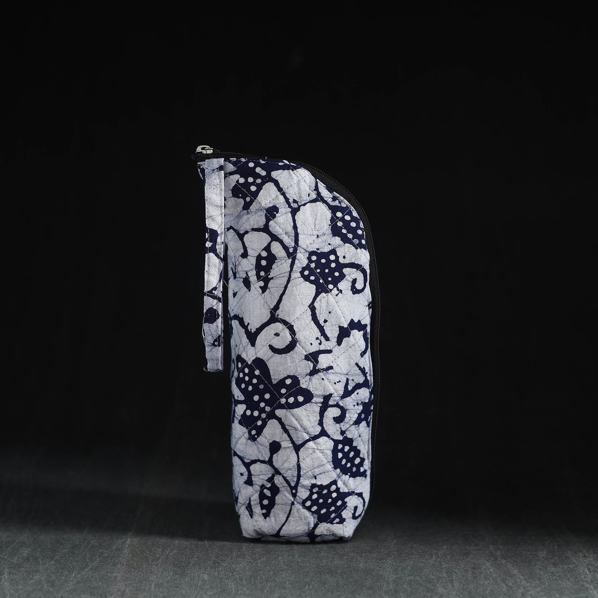 This handmade blue cotton water bottle cover is designed to fit 1L bottles perfectly. It features a foam lining and a secure zipper closure to keep your bottle protected. The fabric is lightweight yet durable, making it a great choice for daily use and travel.
