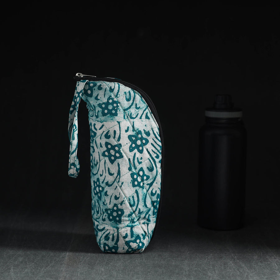 This handmade green cotton water bottle cover is designed to fit 1L bottles perfectly. It features a foam lining and a secure zipper closure to keep your bottle protected. The fabric is lightweight yet durable, making it a great choice for daily use and travel.