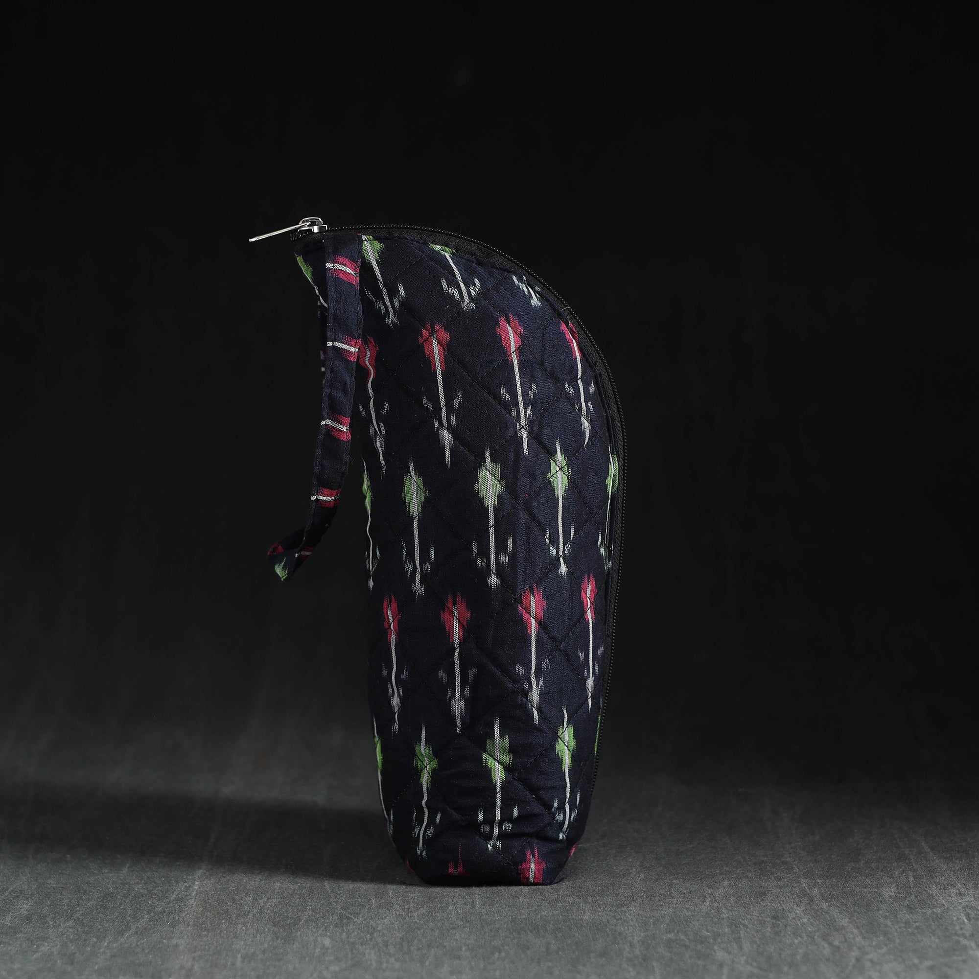 This handmade blue cotton water bottle cover is designed to fit 1L bottles perfectly. It features a foam lining and a secure zipper closure to keep your bottle protected. The fabric is lightweight yet durable, making it a great choice for daily use and travel.