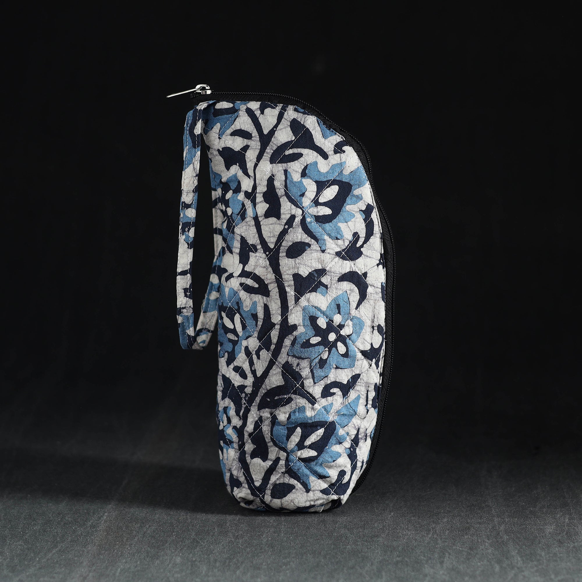 Keep your 1L bottle secure and stylish in this handcrafted blue cotton sleeve. It comes with soft foam padding and a reliable zipper for easy access. Ideal for school, office, or sustainable everyday use.