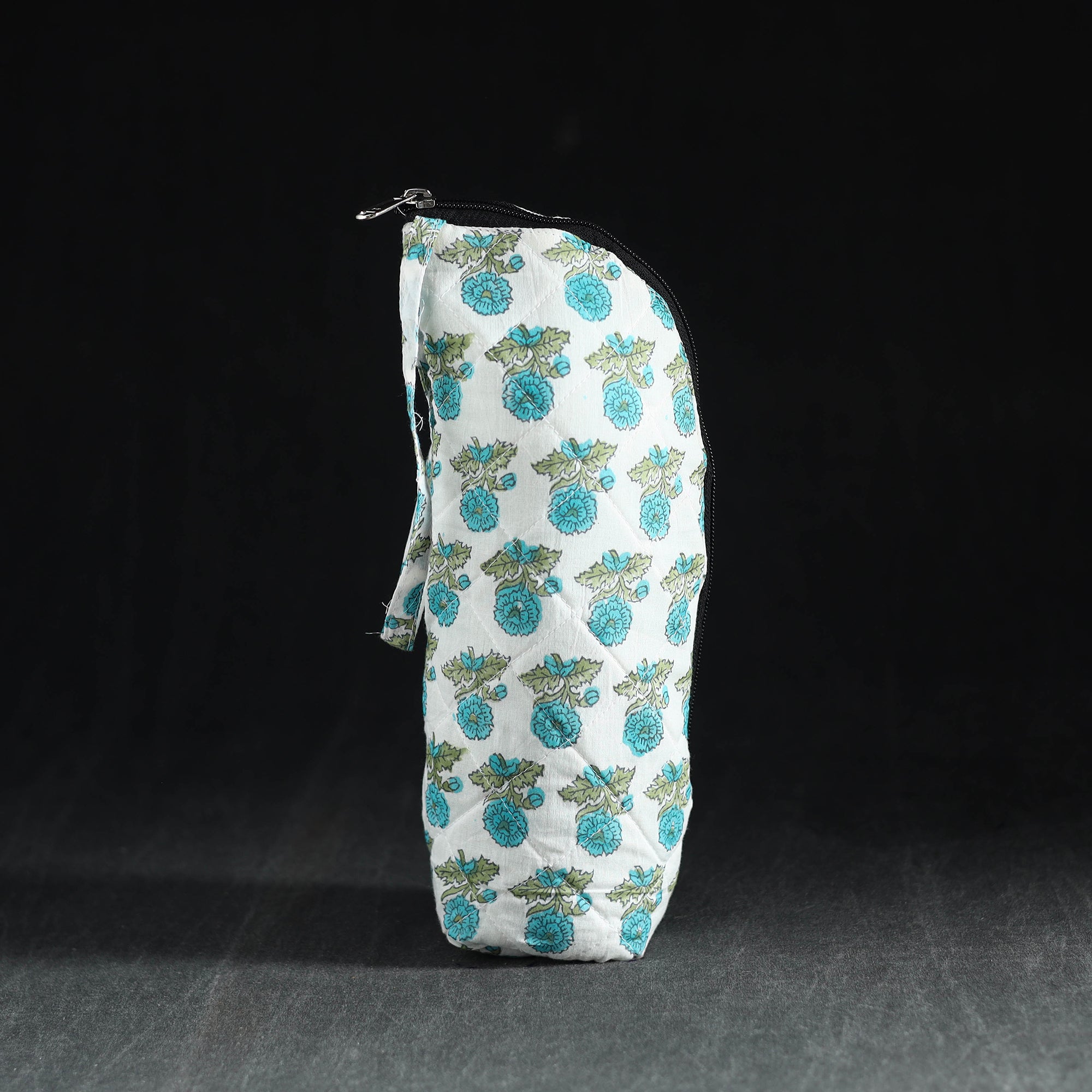 Keep your 1L bottle secure and stylish in this handcrafted blue cotton sleeve. It comes with soft foam padding and a reliable zipper for easy access. Ideal for school, office, or sustainable everyday use.