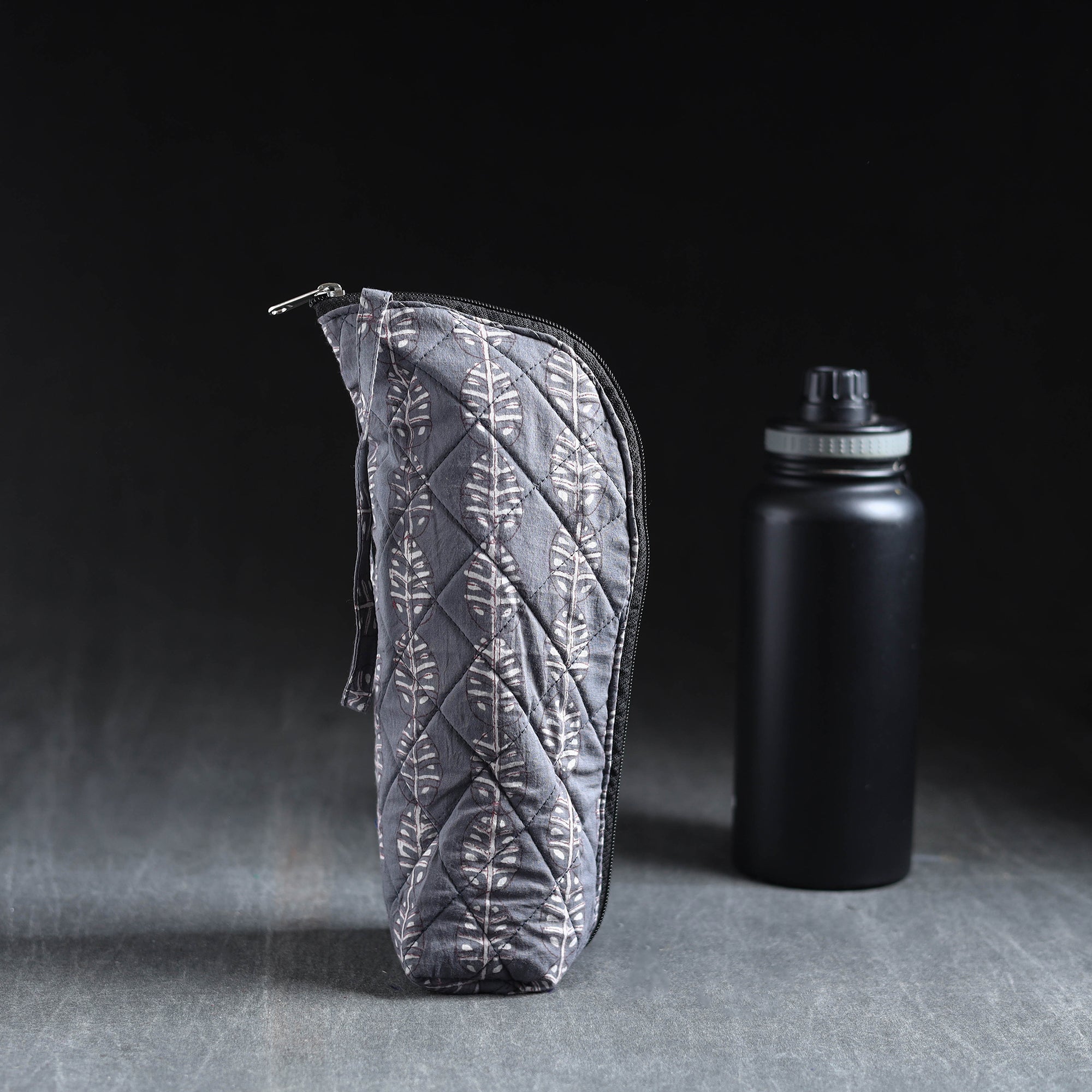 Wrap your 1L bottle in this artisan-crafted grey cotton cover that’s as practical as it is charming. It features a soft foam lining and a secure zippered closure for easy access, it’s your go-to companion for travel, school, or office life, created to offer comfort and ease daily.