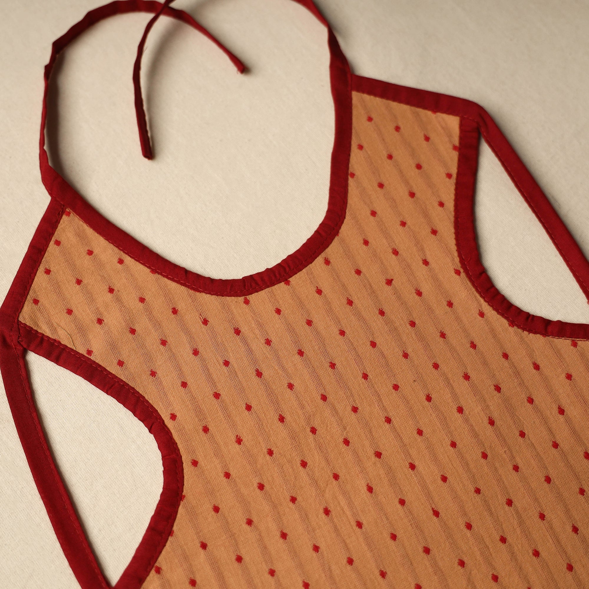 This handmade brown cotton baby bib is made using traditional Indian textiles and features a tie-knot closure for an adjustable fit. The fabric is soft, airy, and breathable, gentle on delicate skin and ideal for everyday use. Whether during feeding, teething, or travel, this bib combines daily practicality with artisanal charm.