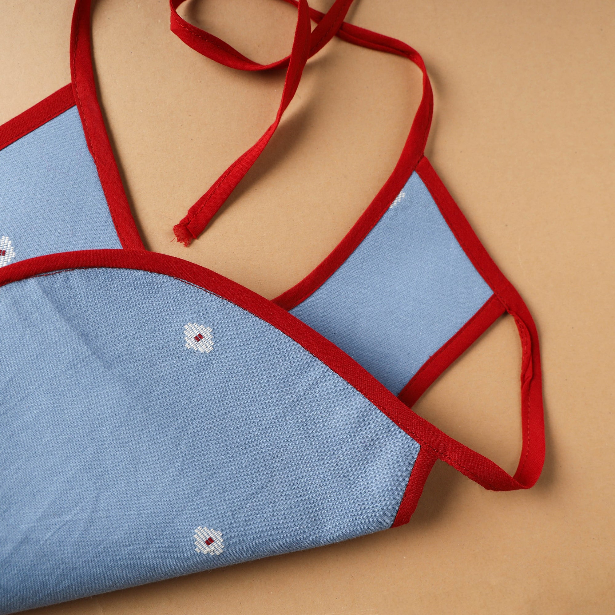 Designed for comfort and cuteness, this cotton blue baby bib is handmade with love. Its soft fabric protects delicate skin while keeping clothes clean. The knot closure provides an adjustable fit, making it perfect for mealtimes, drool protection, or playful outings.