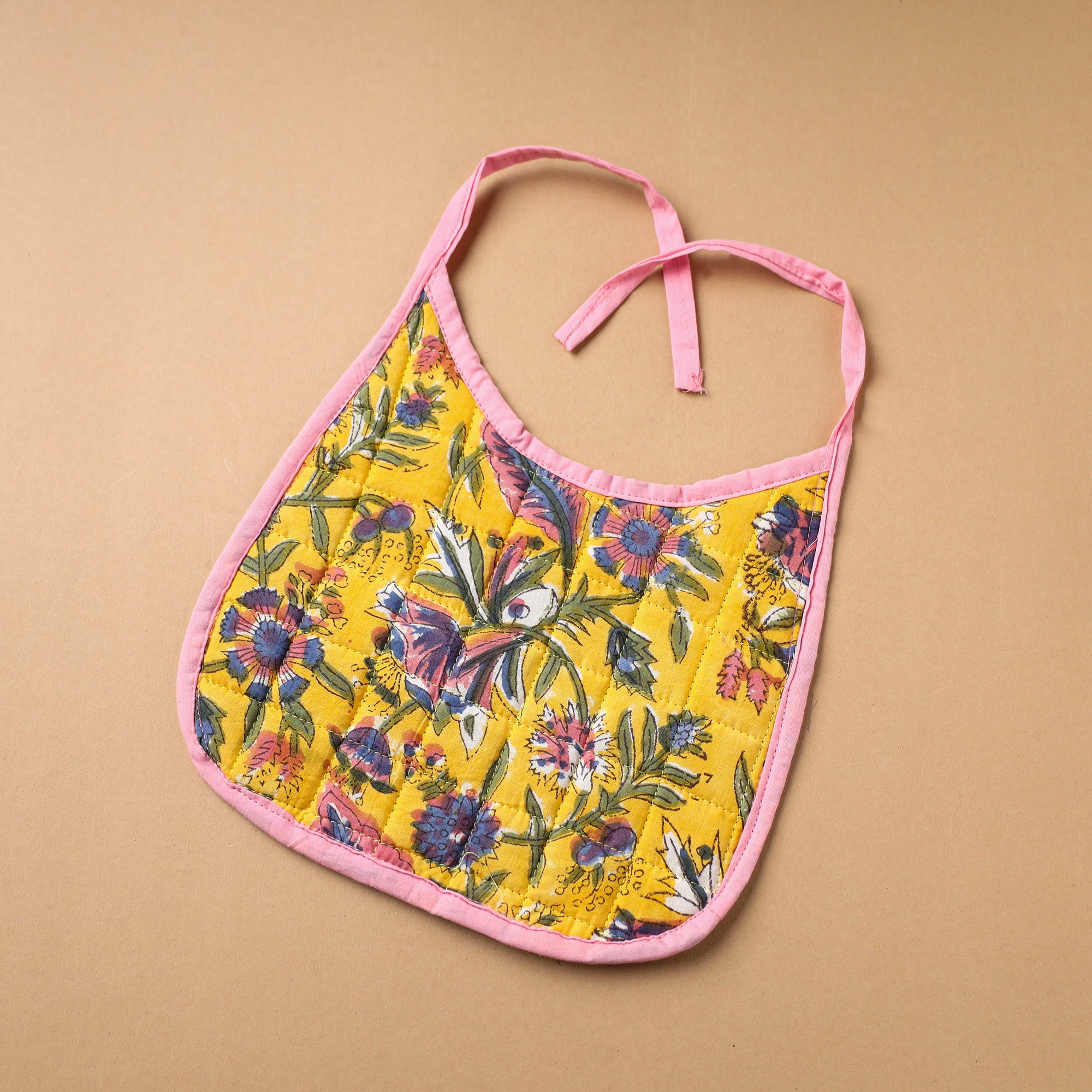 This yellow handmade cotton baby bib is made using traditional Indian textiles and features a tie-knot closure for an adjustable fit. The fabric is soft, airy, and breathable, gentle on delicate skin and ideal for everyday use. Whether during feeding, teething, or travel, this bib combines daily practicality with artisanal charm.