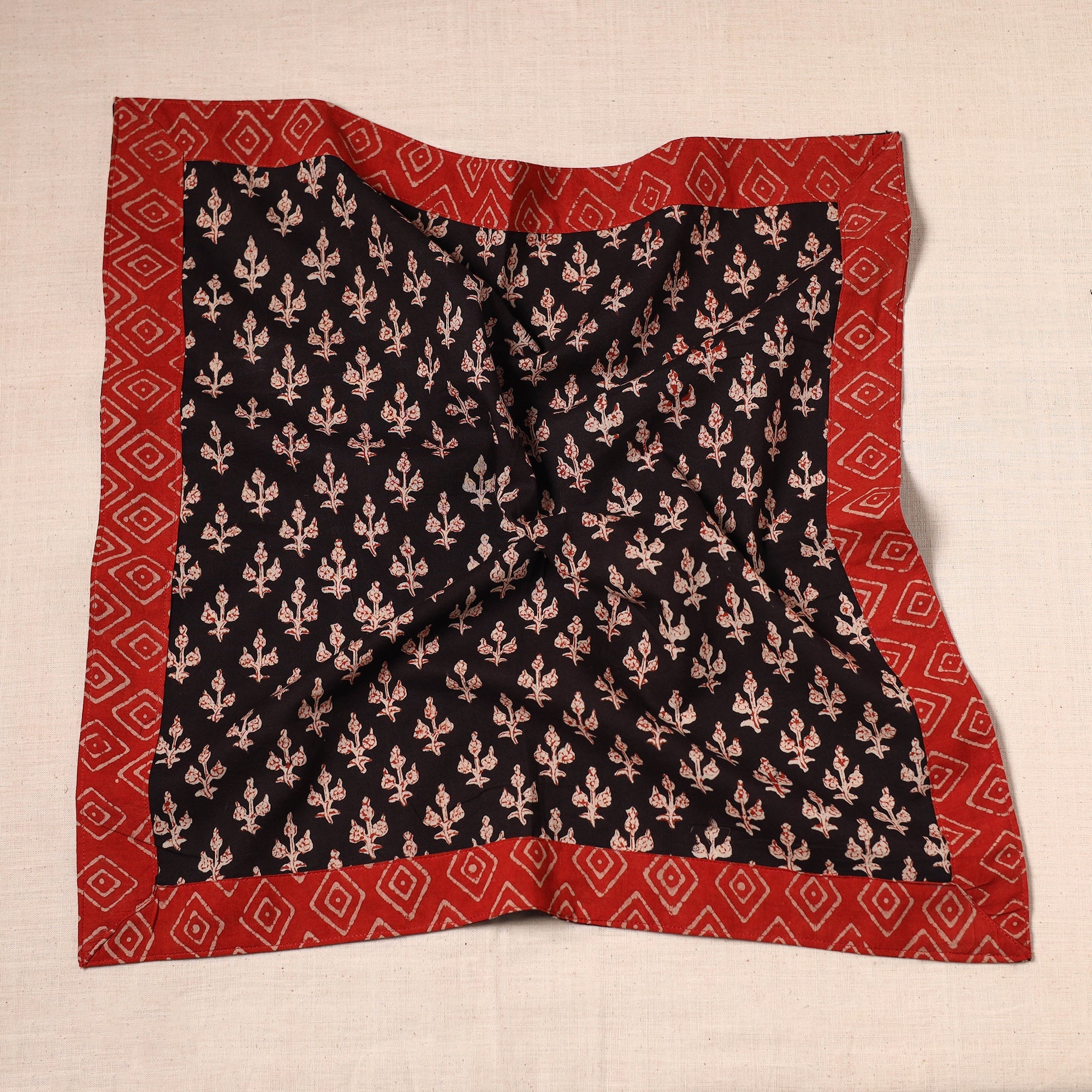 Black pure cotton bandana blends vibrant colours with intricate patterns, crafted from traditional Indian textiles. Whether styled on the head to tame hair or worn around the neck for sun protection, it adds both charm and utility to any outfit.