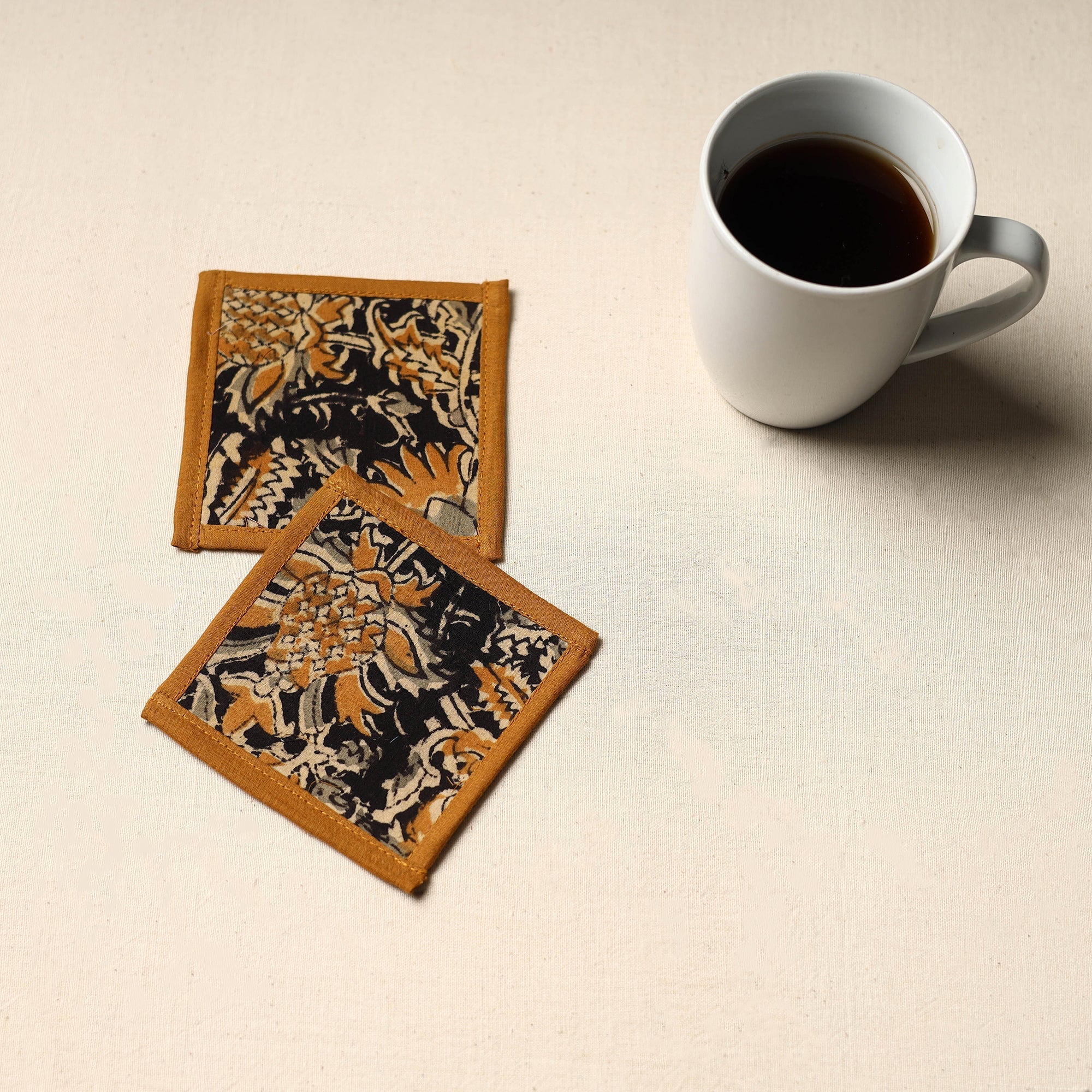 Bring a touch of handmade charm to your table with these black cotton coasters (set of 2). Crafted by skilled artisans using traditional Indian techniques, each piece features vibrant patterns and thoughtful design. Ideal for art lovers and eco-conscious homes.