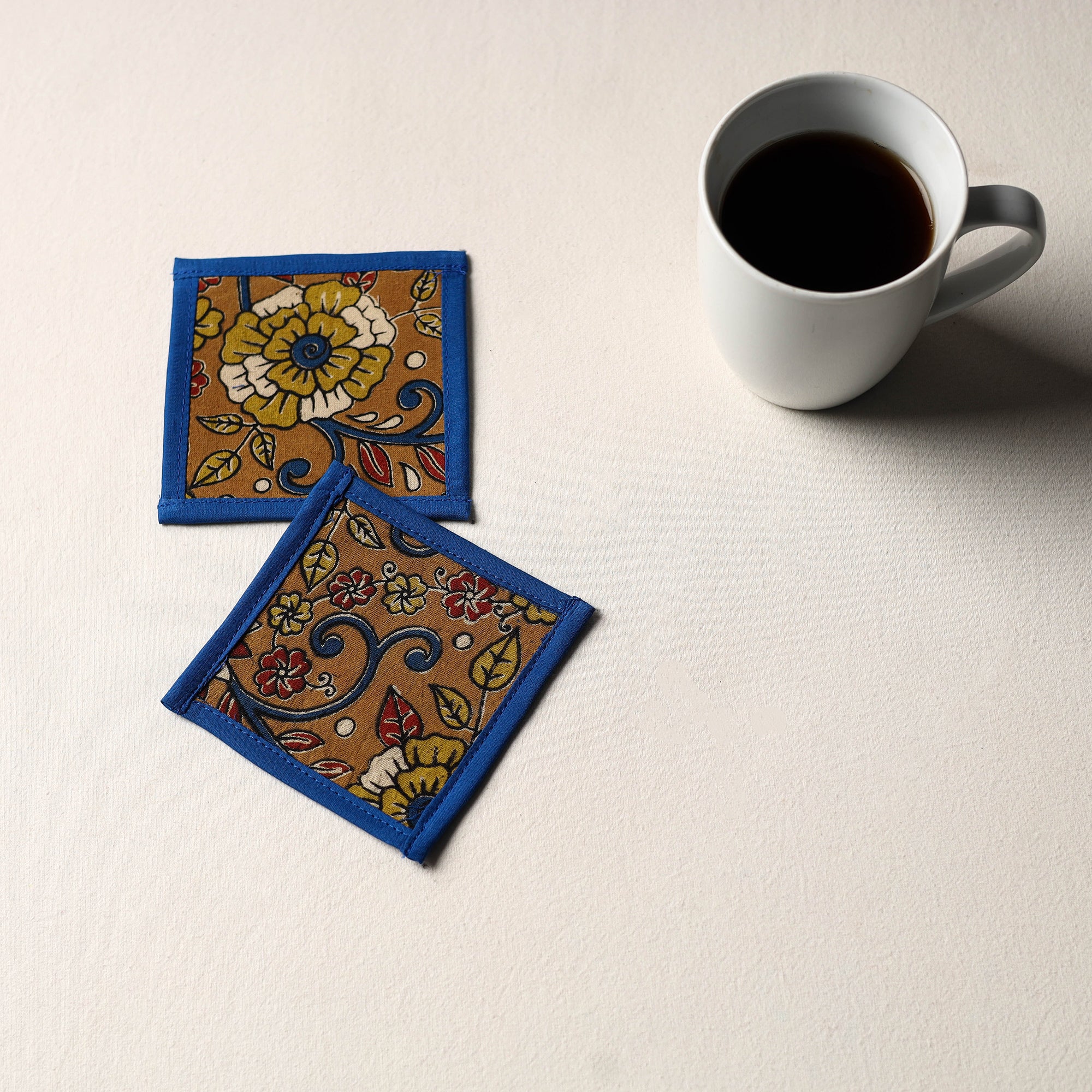 Make your table look neat and stylish with this brown cotton coaster set (set of 2). Crafted by skilled artisans using handcrafted textile, these coasters protect your surfaces from stains and heat while adding a subtle touch of colour and texture. Perfect for daily use and a thoughtful pick for homes that value handmade products.