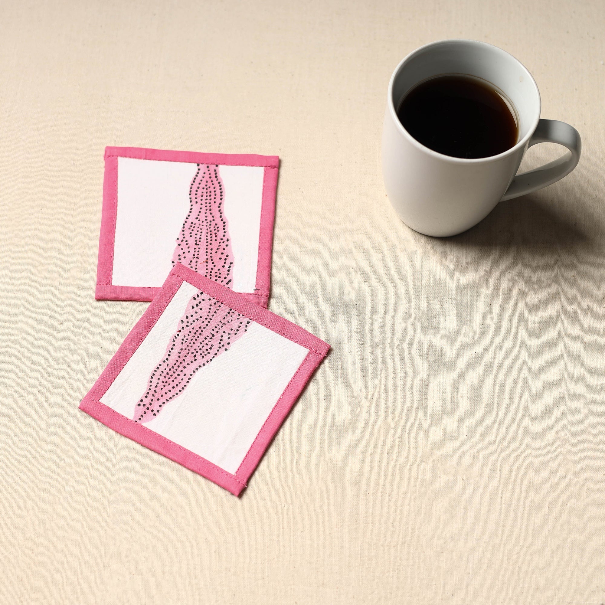 Bring a touch of handmade charm to your table with these white cotton coasters (set of 2). Crafted by skilled artisans using traditional Indian techniques, each piece features vibrant patterns and thoughtful design. Ideal for art lovers and eco-conscious homes.