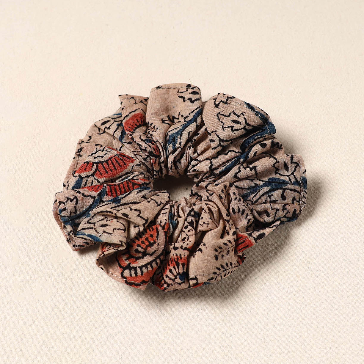 Add a stylish twist to your hairstyle with our handmade beige cotton scrunchie. Whether you're tying a ponytail, completing a braid, or styling a top knot, it blends charm with comfort. Crafted from soft cotton fabric, each piece features a bow design and a strong yet gentle elastic core for a hold.