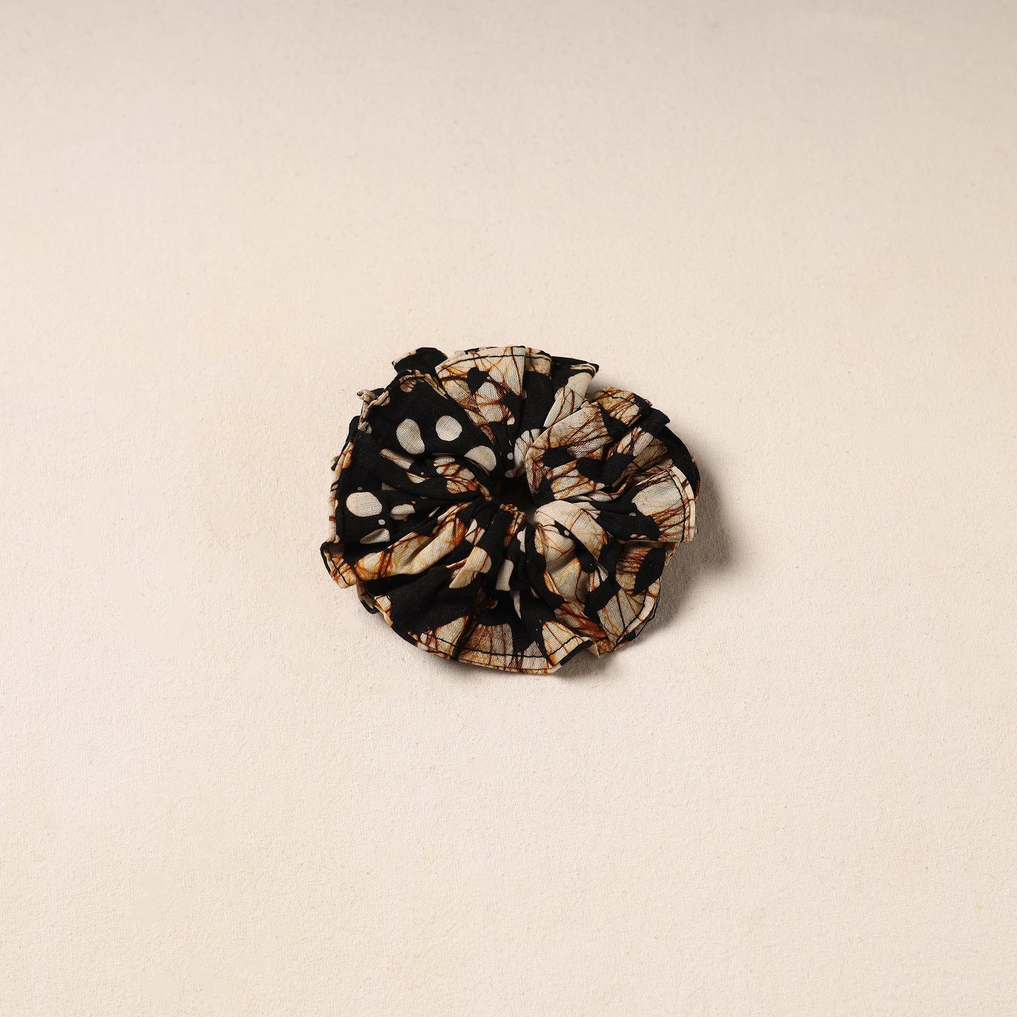 Add a stylish twist to your hairstyle with our handmade black cotton scrunchie. Whether you're tying a ponytail, completing a braid, or styling a top knot, it blends charm with comfort. Crafted from soft cotton fabric, each piece features a bow design and a strong yet gentle elastic core for a hold.