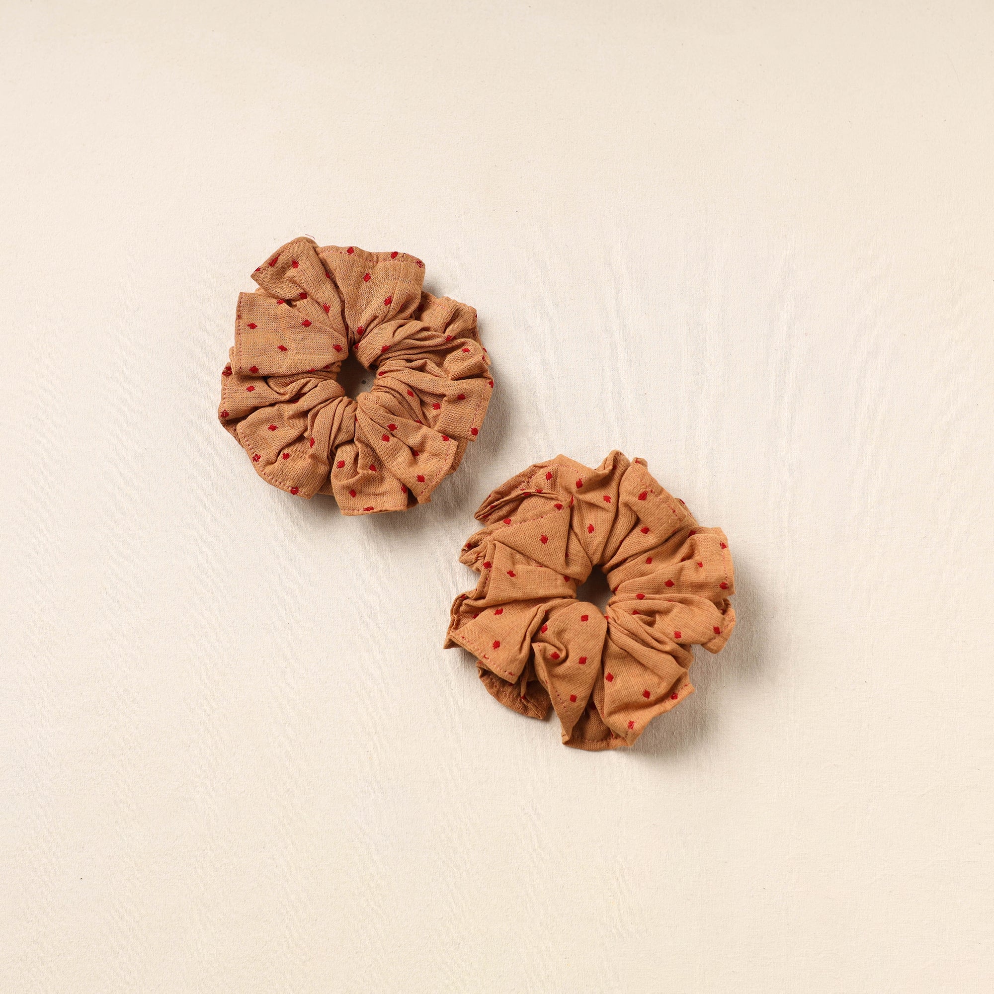 Add a stylish twist to your hairstyle with our handmade beige cotton rubber bands/scrunchies. Whether you’re tying a ponytail, completing a braid, or styling a top knot, they blend charm with comfort. Crafted from soft cotton fabric, each set of 2 offers a secure, gentle hold while adding a touch of elegance to your everyday look.