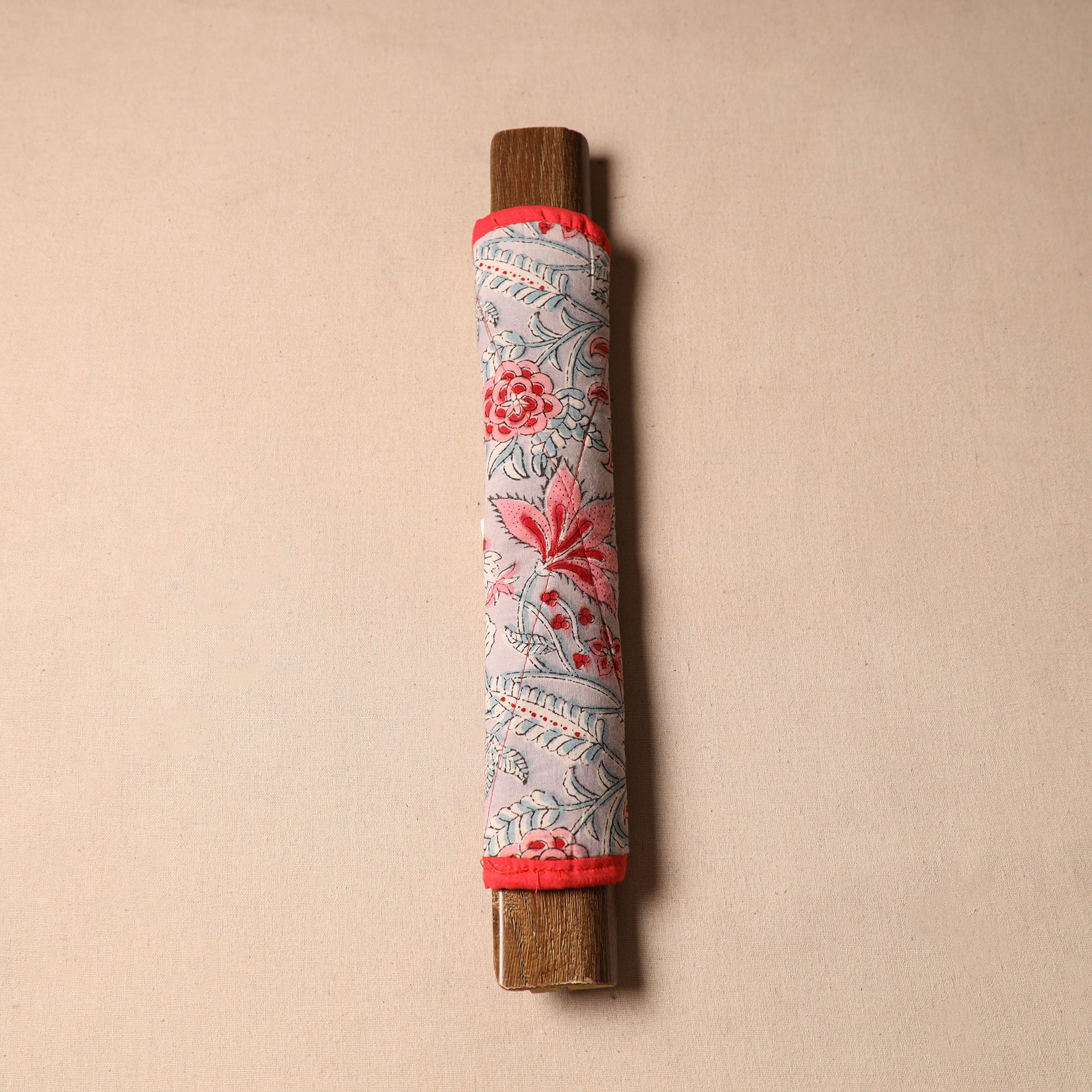 Keep your fridge handles clean with our handcrafted grey cotton cover. Soft, durable, and adorned with traditional patterns for a touch of elegance.