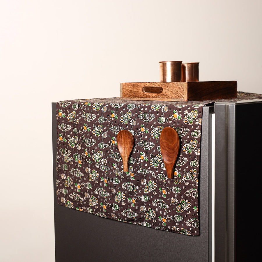 Infuse your kitchen with ethnic elegance using this brown cotton fridge top cover made from artisanal Indian fabrics. It protects your fridge from daily dust and scratches, while six handy pockets provide practical storage for everyday essentials.
