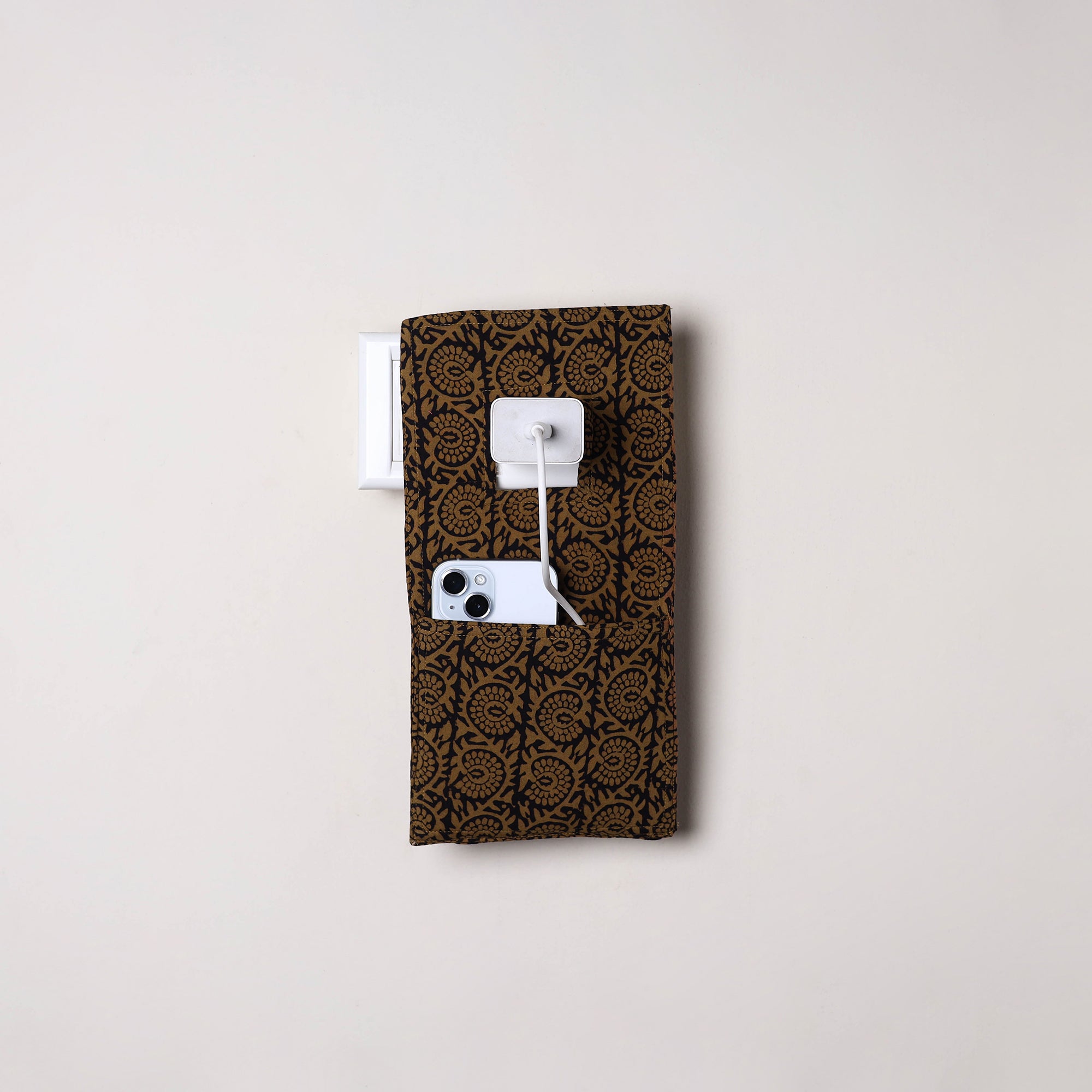 This brown handmade mobile charging holder is crafted from durable cotton fabric and features a convenient cut-out to hang directly on the plug. Designed with a deep front pocket, it securely holds your phone while charging. Created by skilled artisans, it’s lightweight, foldable, and travel-friendly, fitting most phone sizes. A practical pick for home, office, or travel use.