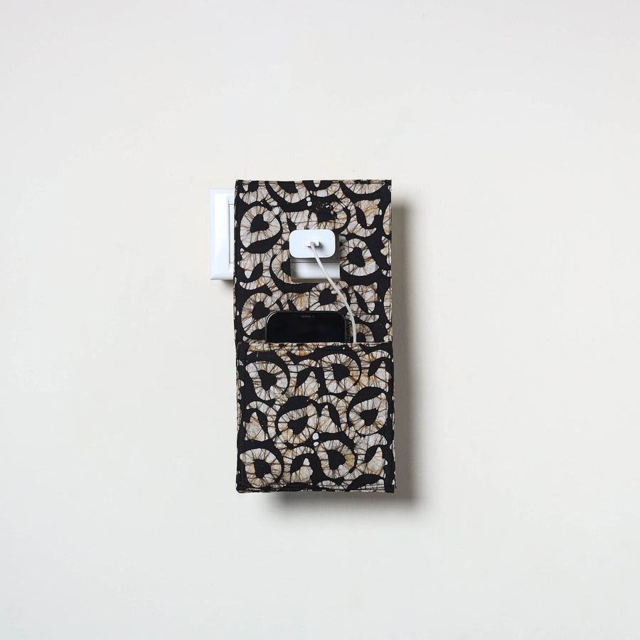 This black handmade mobile charging holder is crafted from durable cotton fabric and offers a smart way to hold your phone while charging. Created by skilled artisans, it keeps your device secure whether at home or during travel. Lightweight and travel-friendly, it comfortably fits most phone sizes.