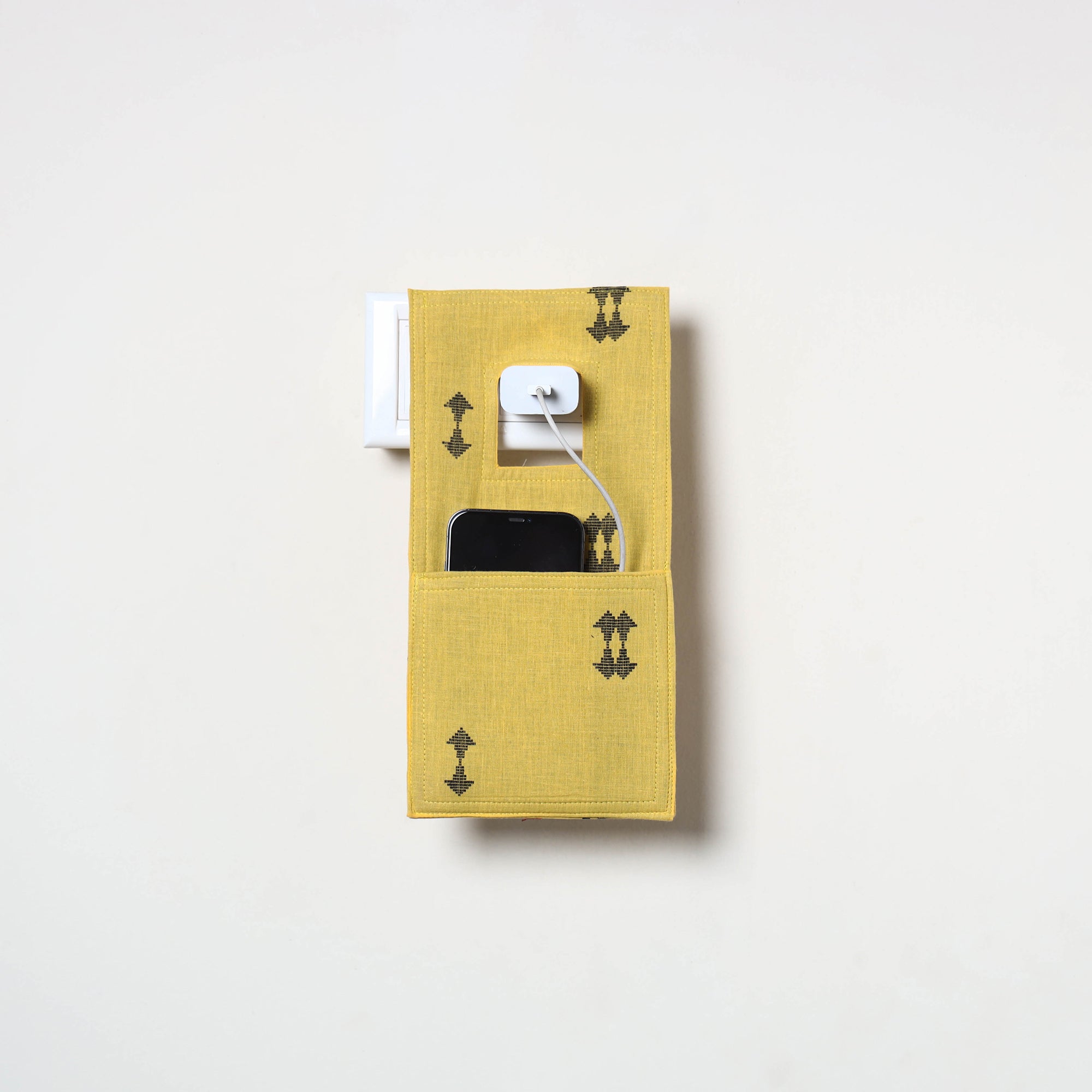 This yellow handmade mobile charging holder is crafted from durable cotton fabric and offers a smart way to hold your phone while charging. Created by skilled artisans, it keeps your device secure whether at home or during travel. Lightweight and travel-friendly, it comfortably fits most phone sizes.