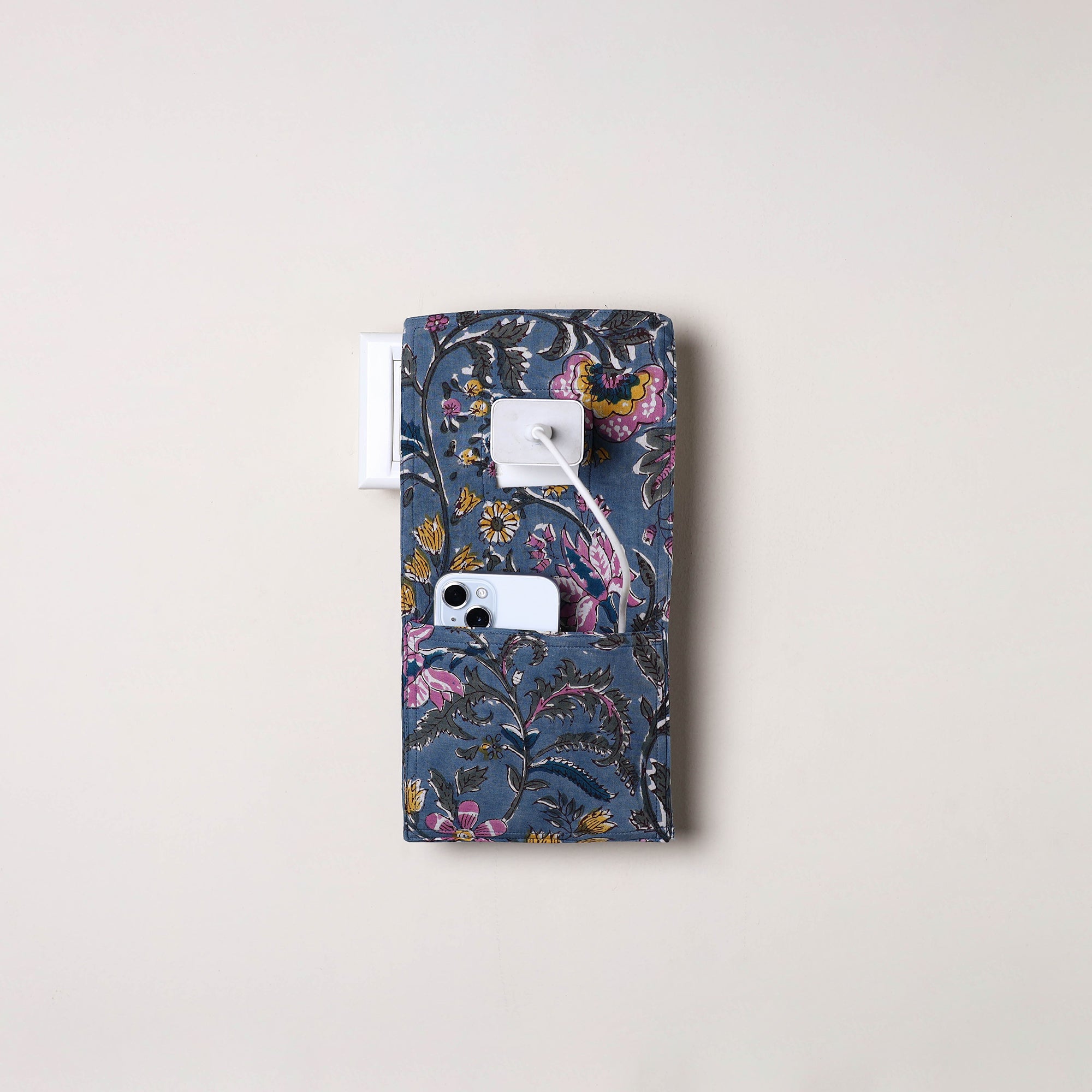 This blue handmade mobile charging holder is crafted from durable cotton fabric and features a convenient cut-out to hang directly on the plug. Designed with a deep front pocket, it securely holds your phone while charging. Created by skilled artisans, it’s lightweight, foldable, and travel-friendly, fitting most phone sizes. A practical pick for home, office, or travel use.