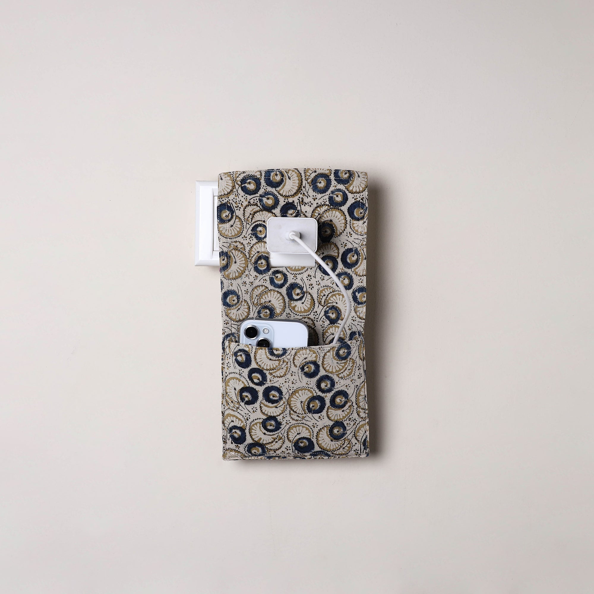 This beige handmade mobile charging holder is crafted from durable cotton fabric and features a convenient cut-out to hang directly on the plug. Designed with a deep front pocket, it securely holds your phone while charging. Created by skilled artisans, it’s lightweight, foldable, and travel-friendly, fitting most phone sizes. A practical pick for home, office, or travel use.