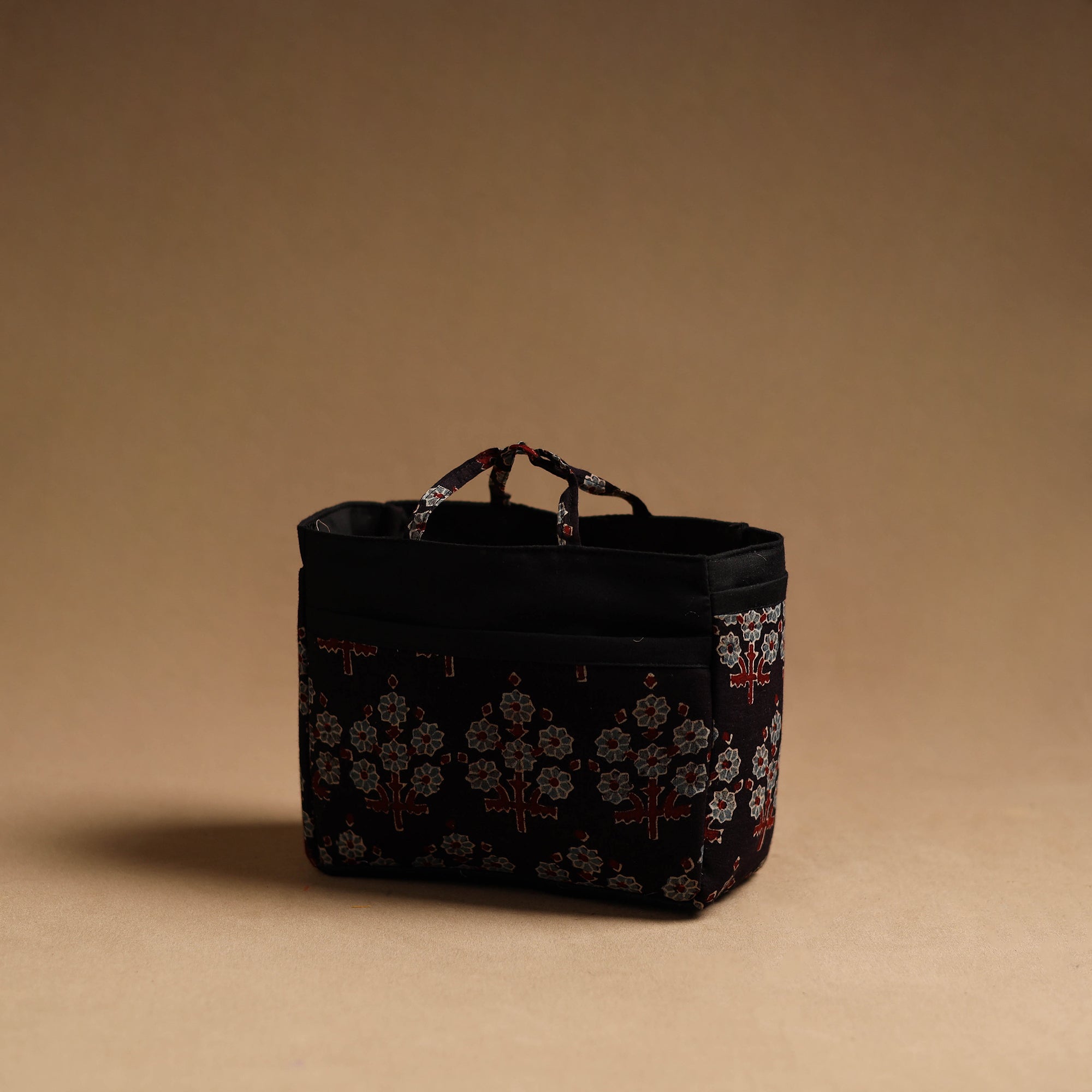 Black handmade cotton cosmetic/toiletry bag crafted by Indian artisans. This bag features a spill-proof plastic layer inside, making it perfect for toiletries or cosmetics. With multiple pockets inside and out, you’ll have ample space for all your essentials.