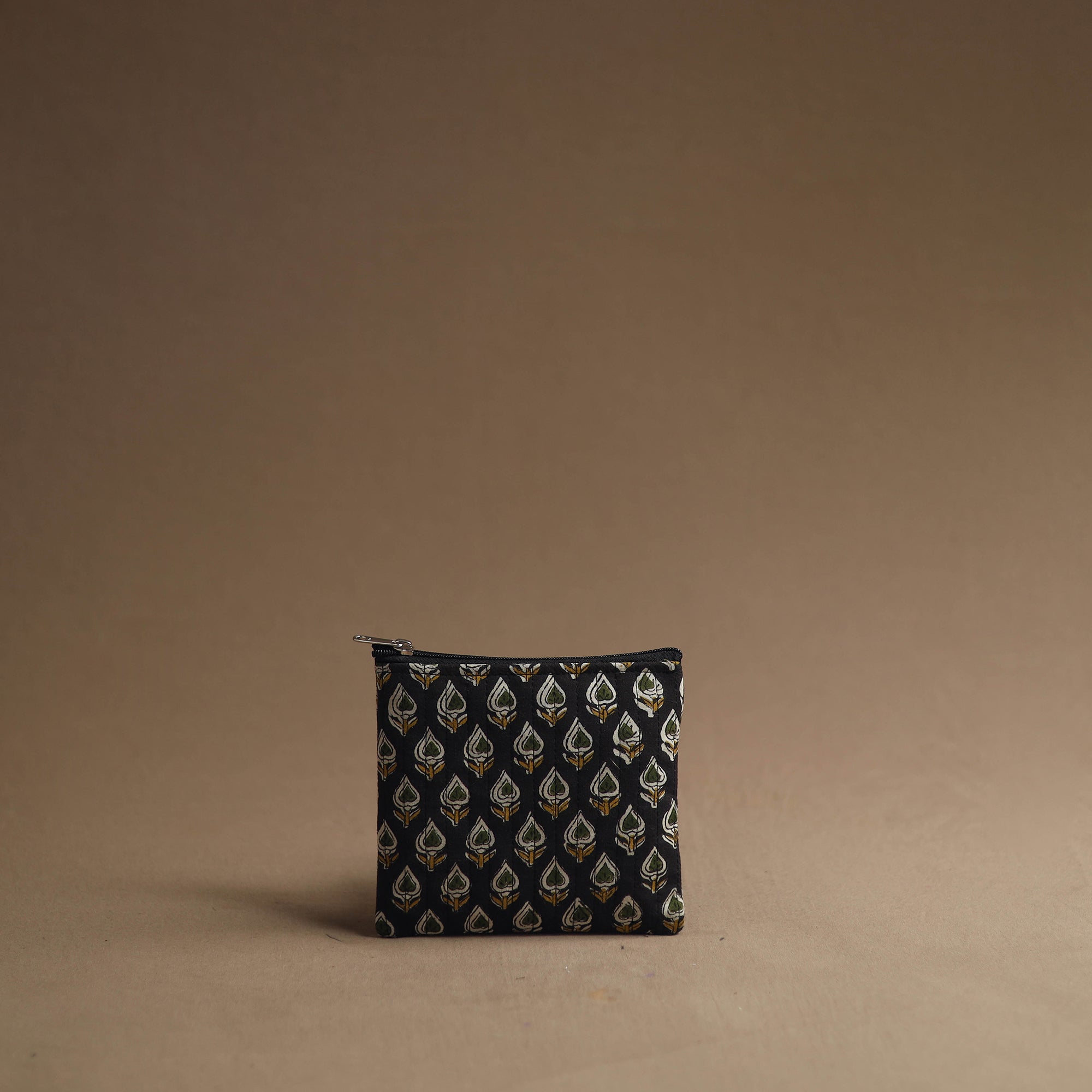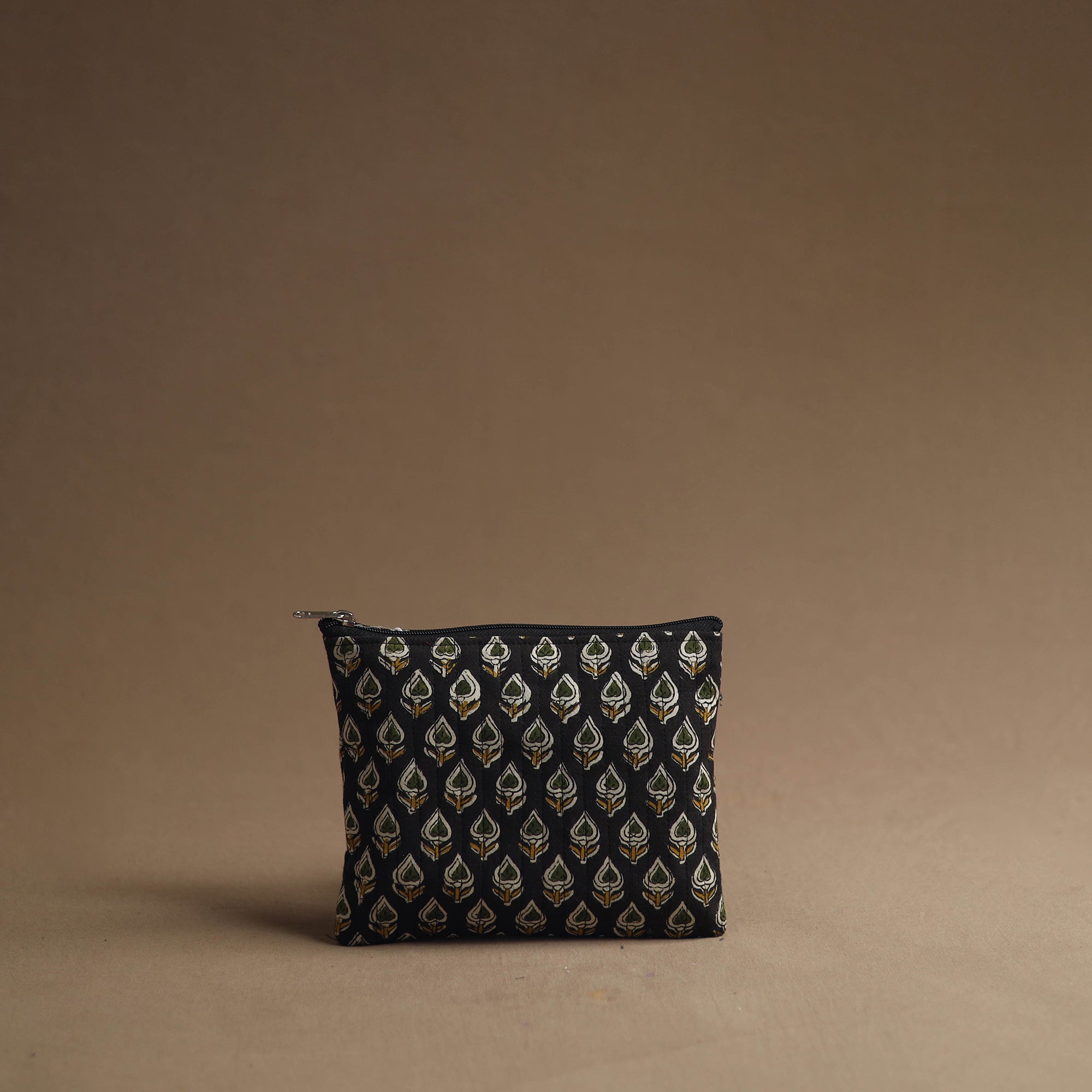 Material Keep your essentials organized with our black handmade cotton multipurpose utility pouches (set of 3). The handcrafted bag set serves as a multipurpose solution for storing makeup, jewelry, medicines, stationery, and more. The foam layer lining ensures durability and protection. These pouches are having a smooth zipper closure.