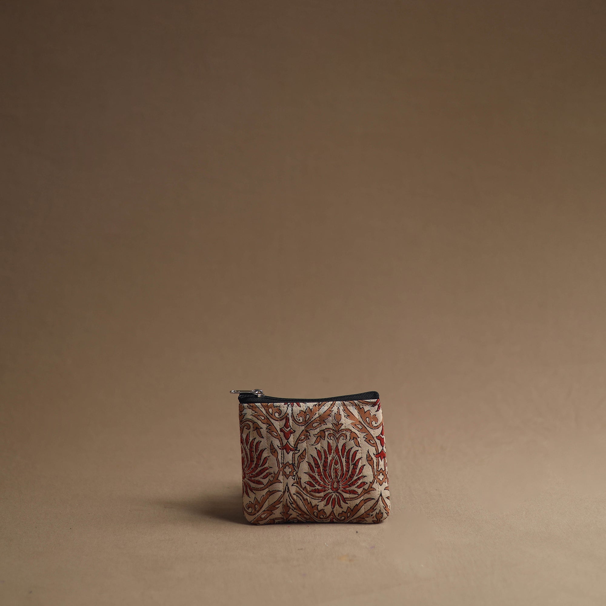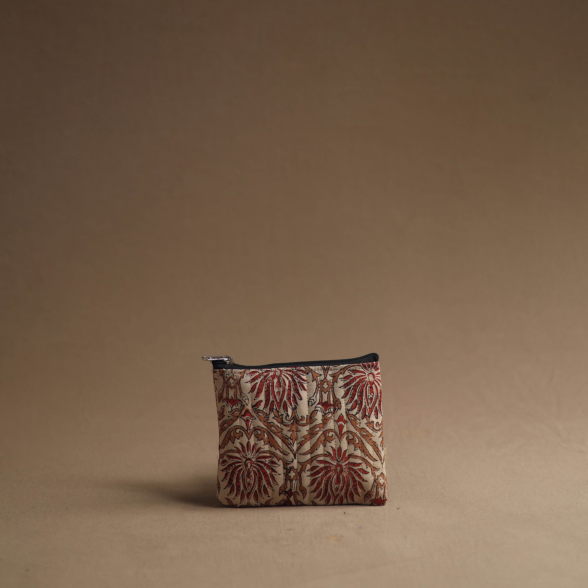 Keep your essentials organized with our beige handmade cotton multipurpose utility pouches (set of 3). The handcrafted bag set serves as a multipurpose solution for storing makeup, jewelry, medicines, stationery, and more. The foam layer lining ensures durability and protection. These pouches are having a smooth zipper closure.