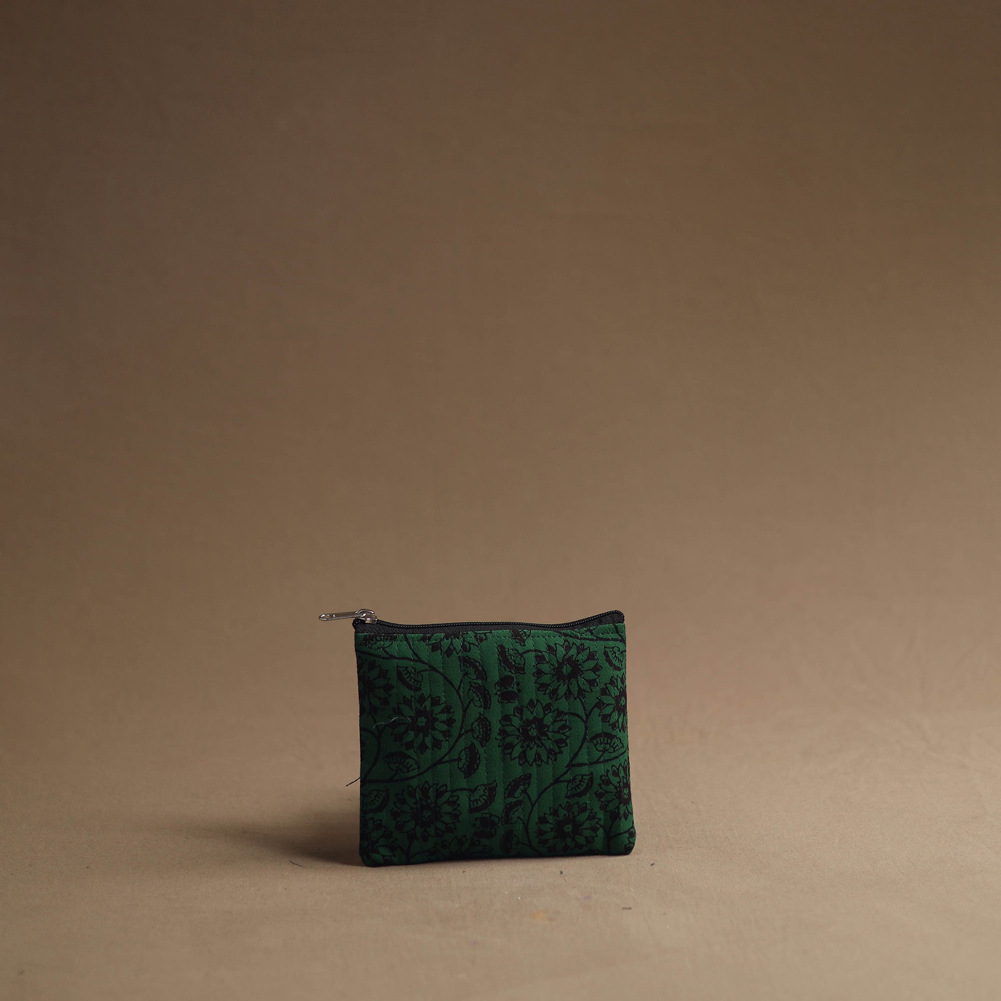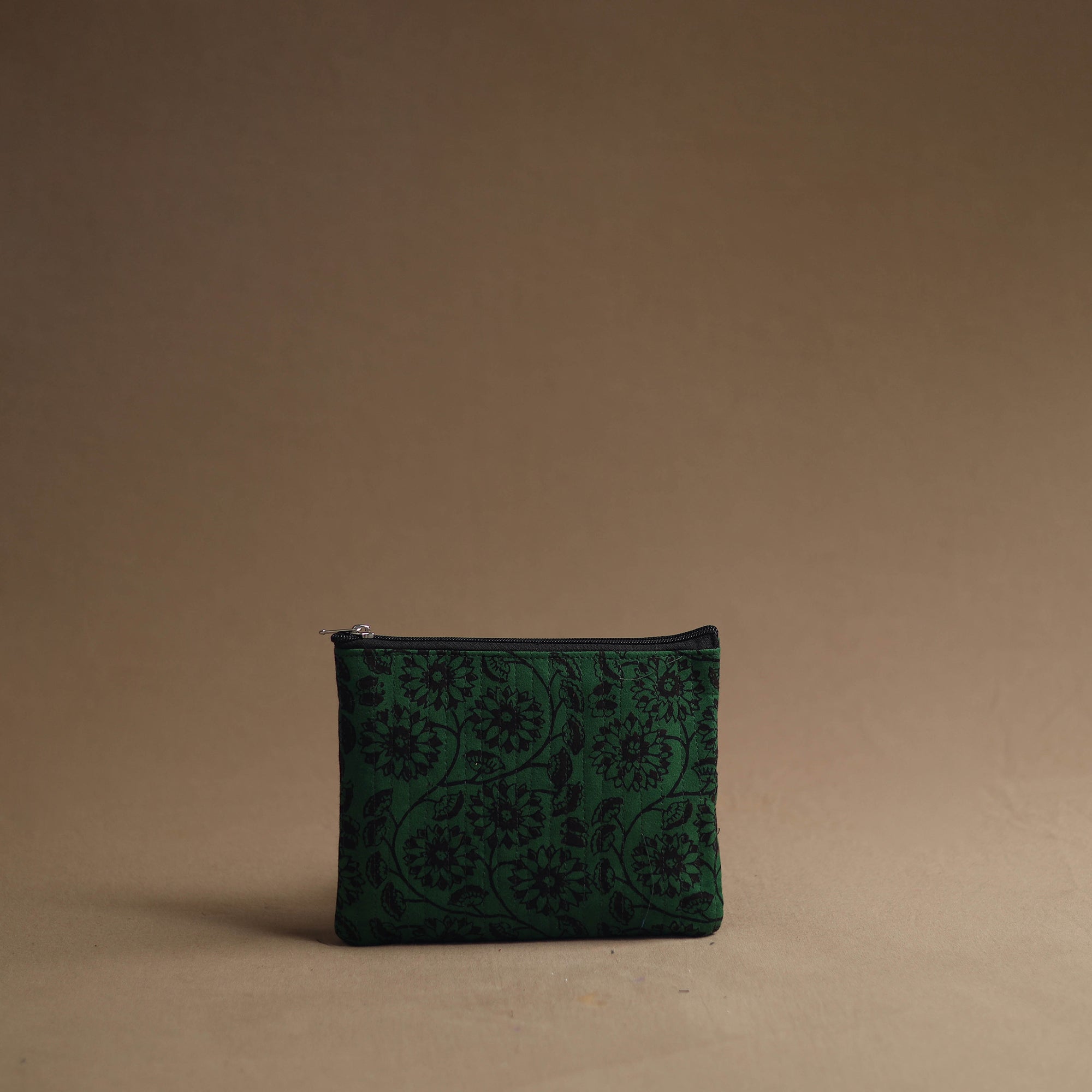 Keep your essentials organized with our green handmade cotton multipurpose utility pouches (set of 3). The handcrafted bag set serves as a multipurpose solution for storing makeup, jewelry, medicines, stationery, and more. The foam layer lining ensures durability and protection. These pouches are having a smooth zipper closure.